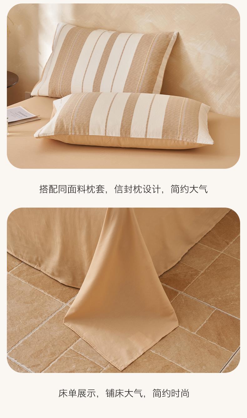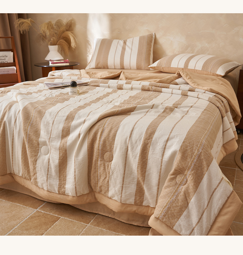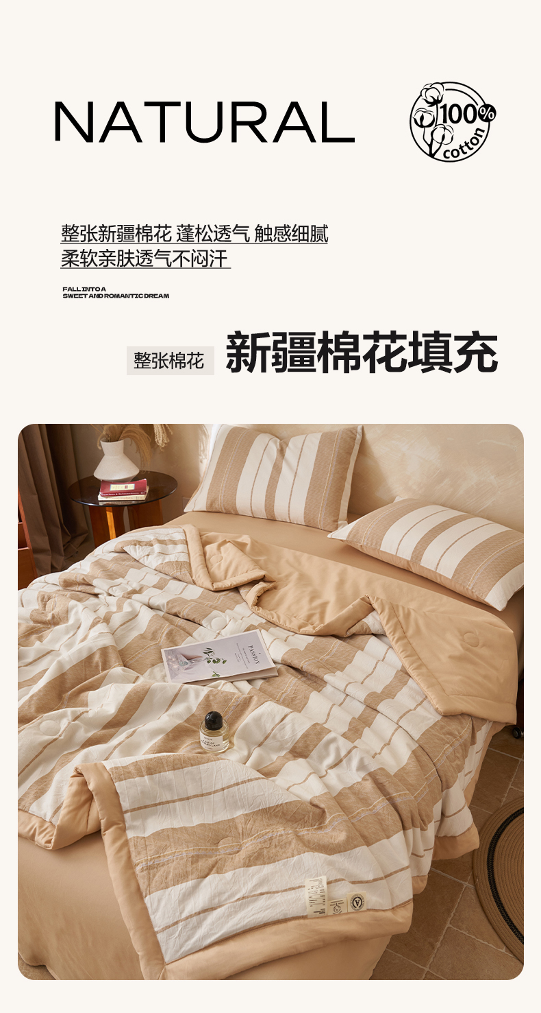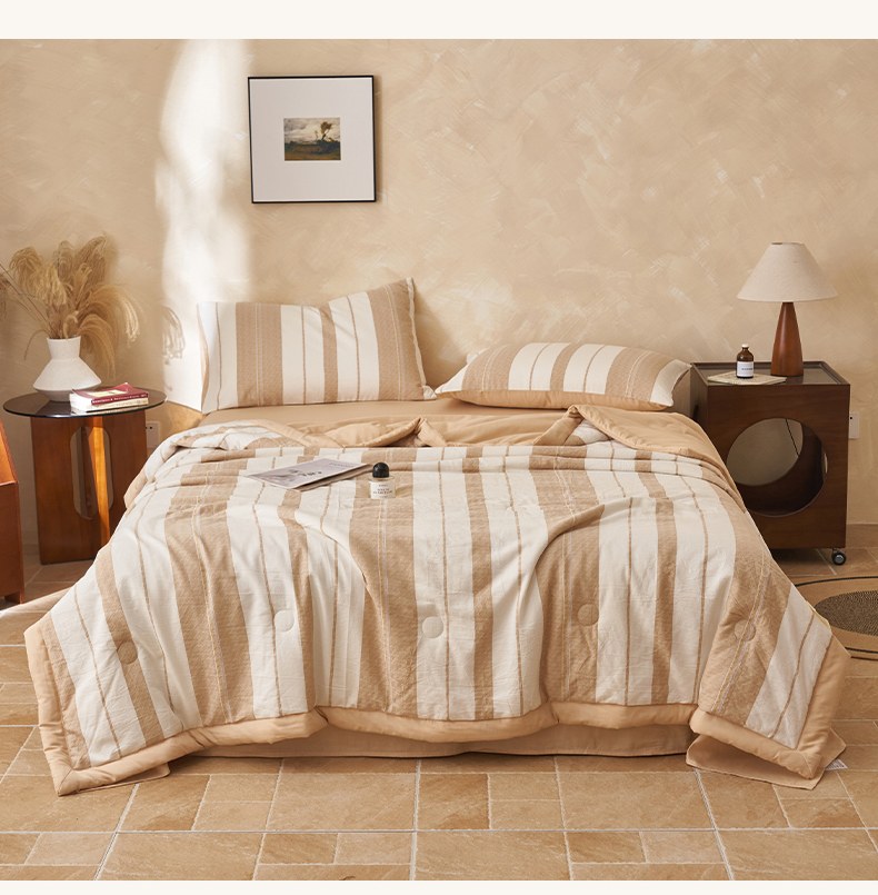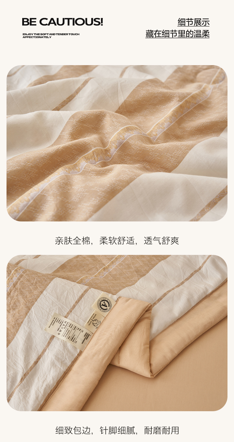 • 91家纺网 家纺一手货源 找家纺 简如 2026新款里外全棉色织提花新疆棉花夏凉被四件套详-简条系列 千鸟格-米驼