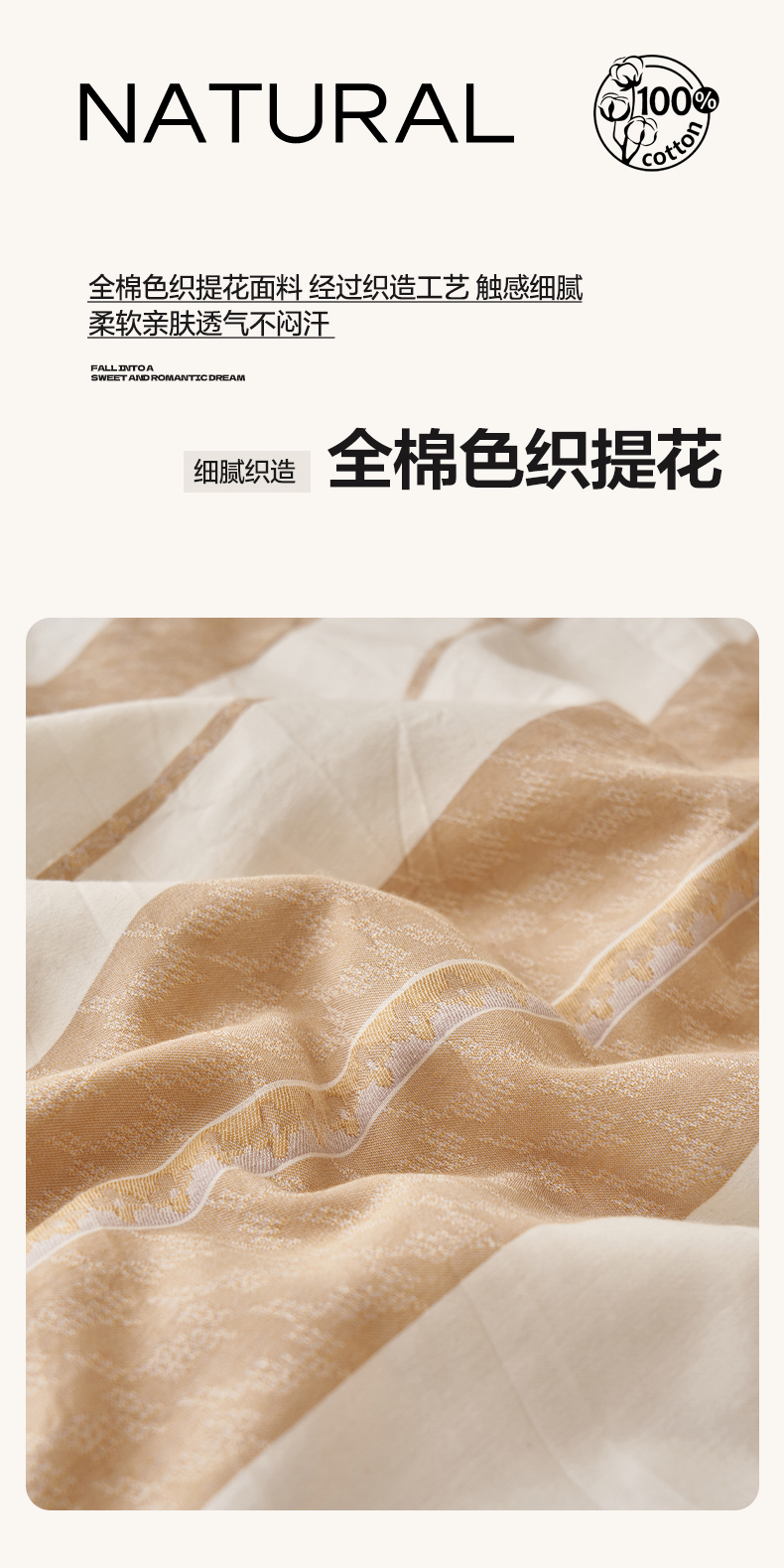 (总)简如 2026新款色织提花新疆棉花夏凉被四件套-织雅系列,织雅-绿,织雅-粉,织雅-灰,织雅-驼
