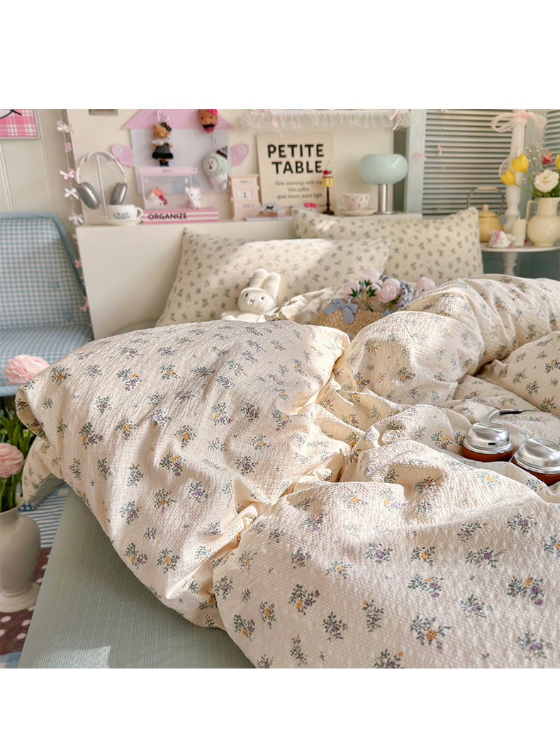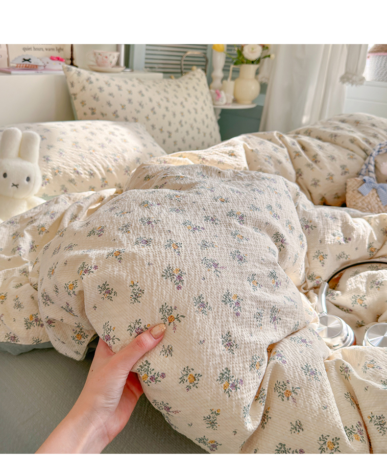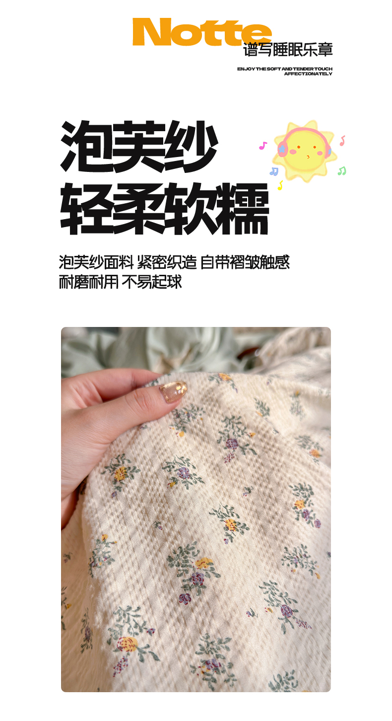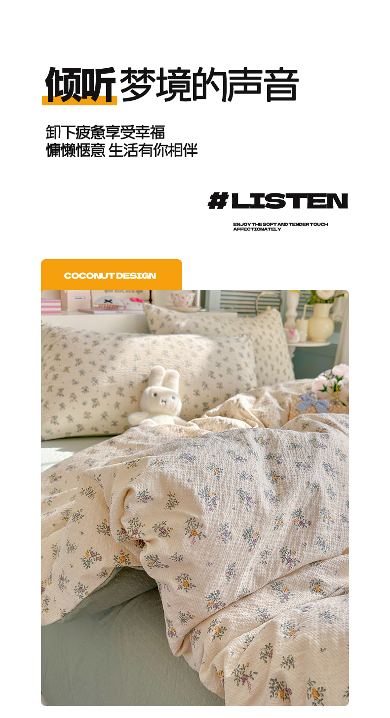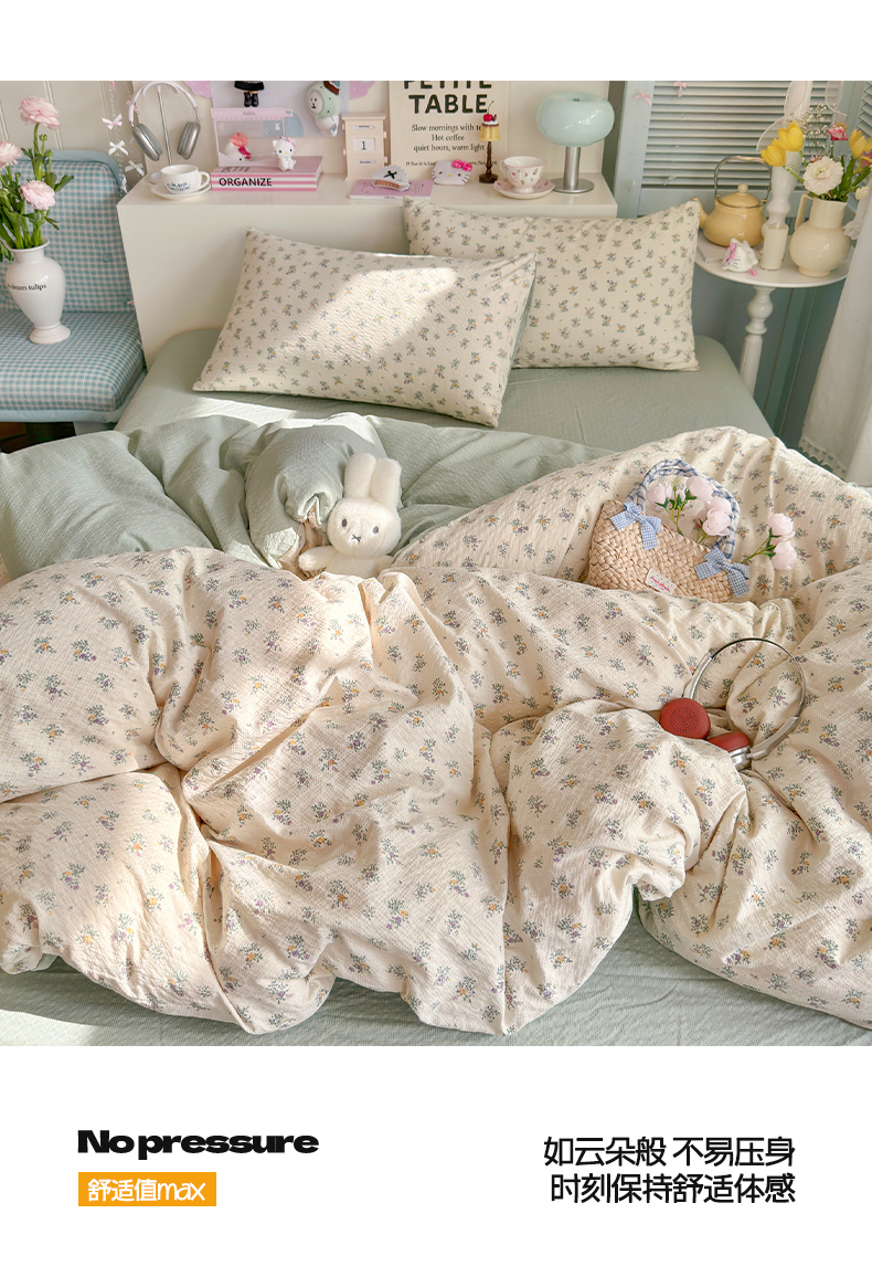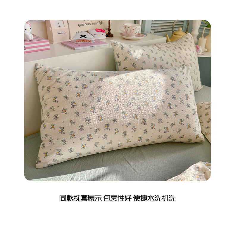 当前位置: 91家纺网 > 商品网购 > 床品套件 > 四件套 > 双层纱四件套 > 铺尚美家纺 2026新款小清新110g高品质直播热卖款A类泡芙棉双层纱四件套 七里香