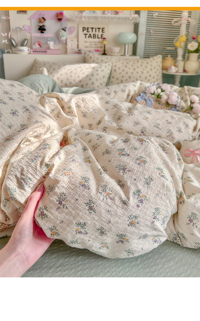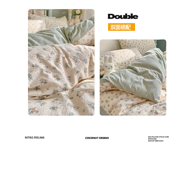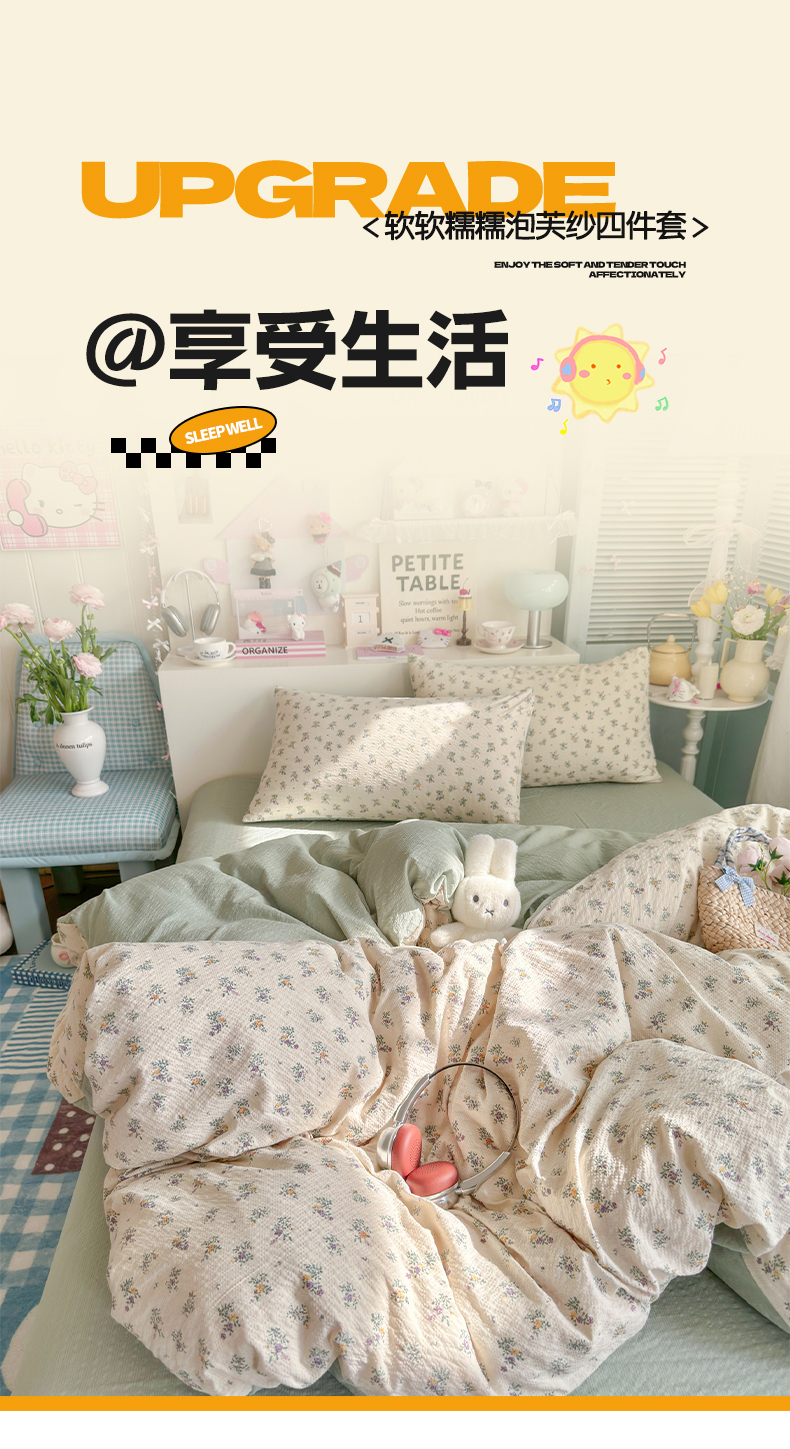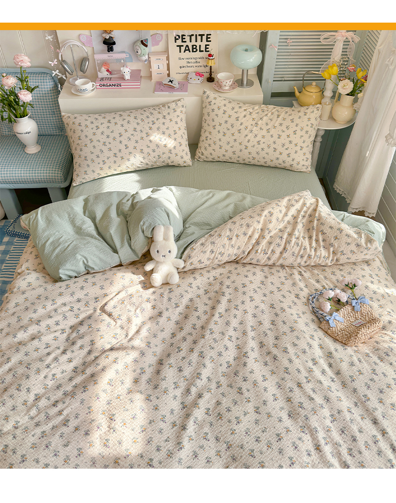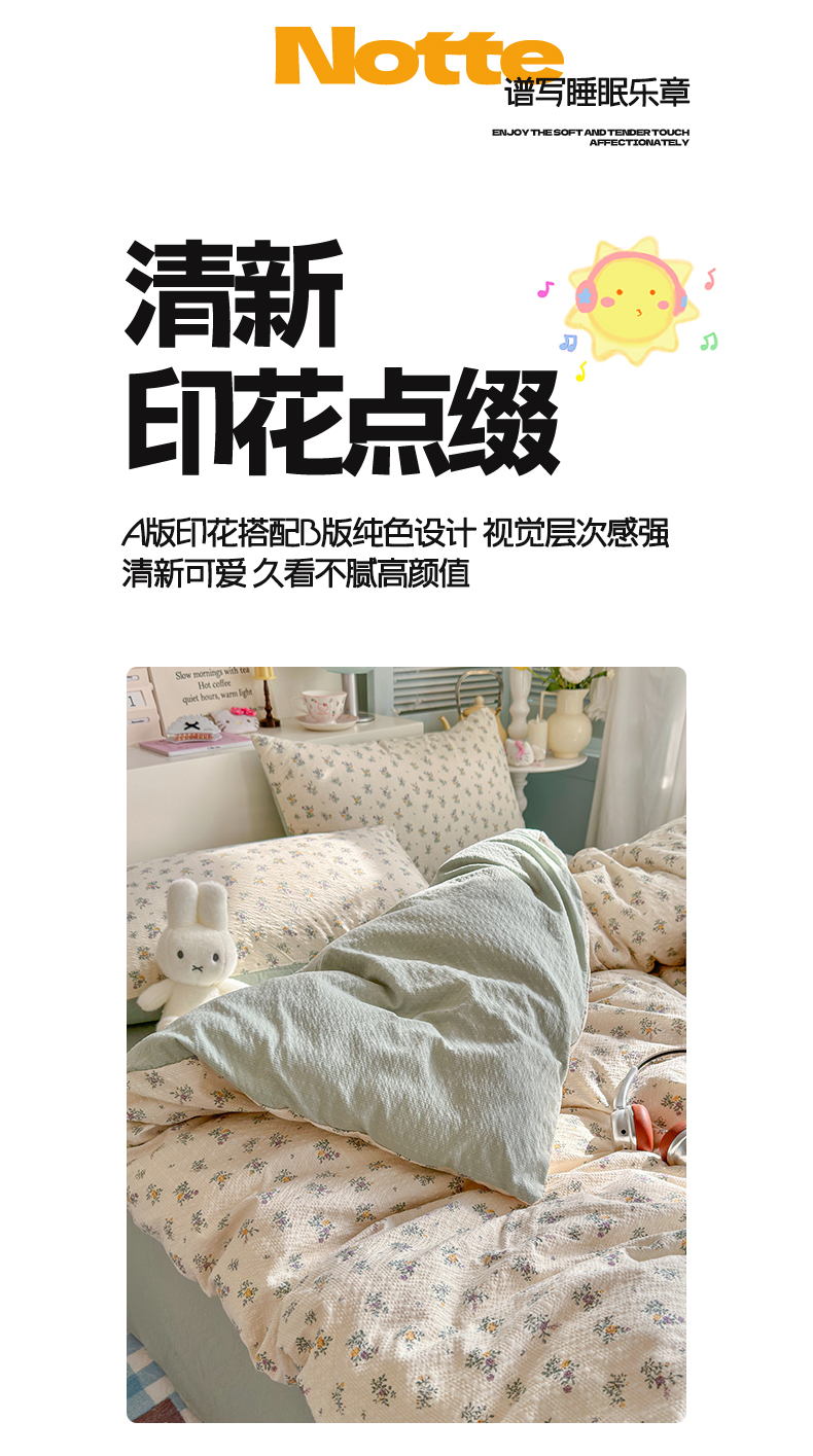 当前位置: 91家纺网 > 商品网购 > 床品套件 > 四件套 > 双层纱四件套 > 铺尚美家纺 2026新款小清新110g高品质直播热卖款A类泡芙棉双层纱四件套 七里香