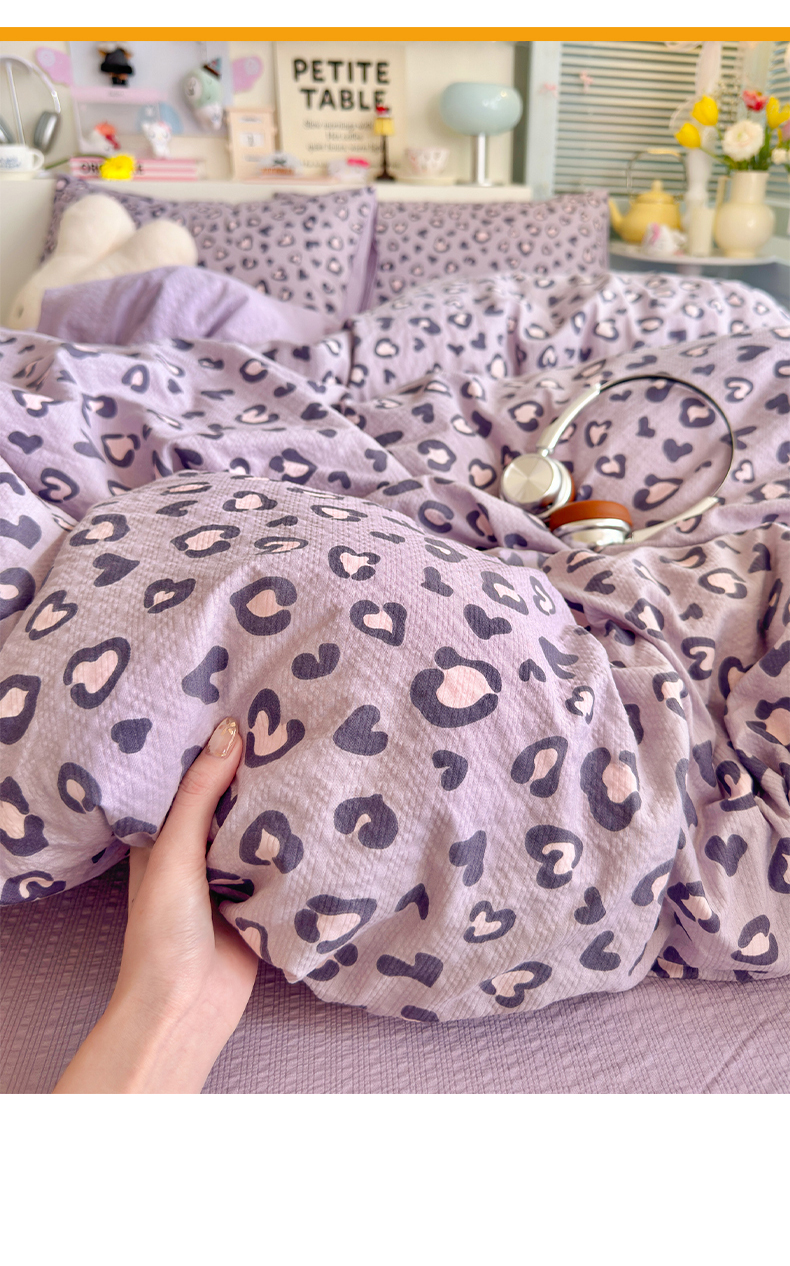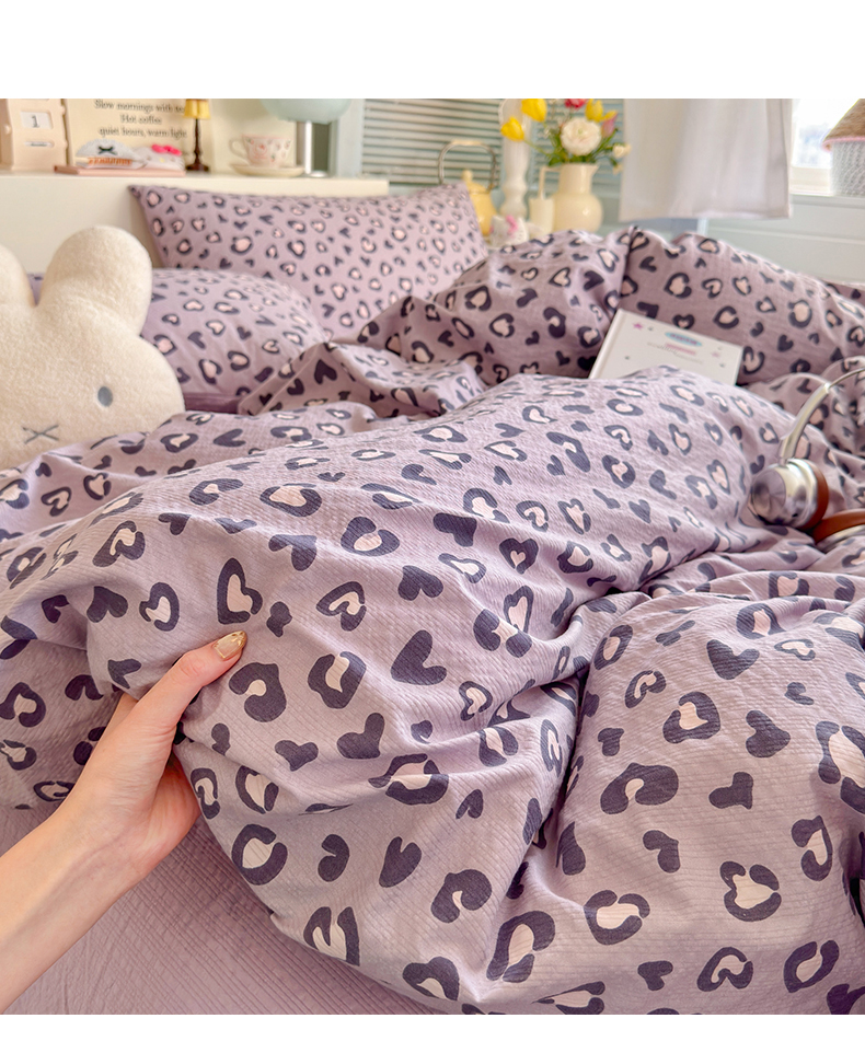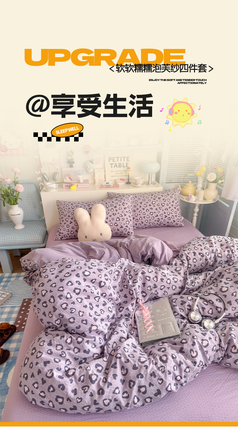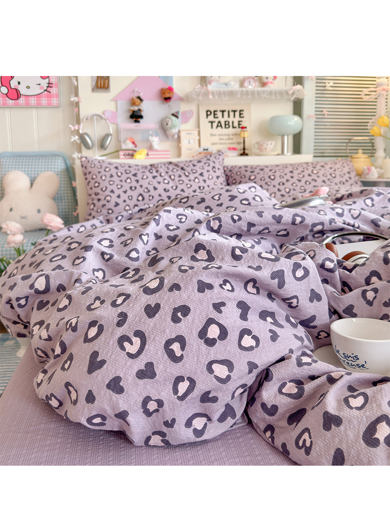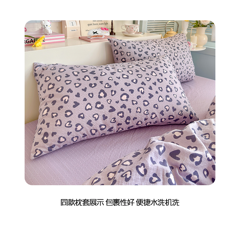 当前位置: 91家纺网 > 商品网购 > 床品套件 > 四件套 > 双层纱四件套 > 铺尚美家纺 2026新款小清新110g高品质直播热卖款A类泡芙棉双层纱四件套 紫豹纹