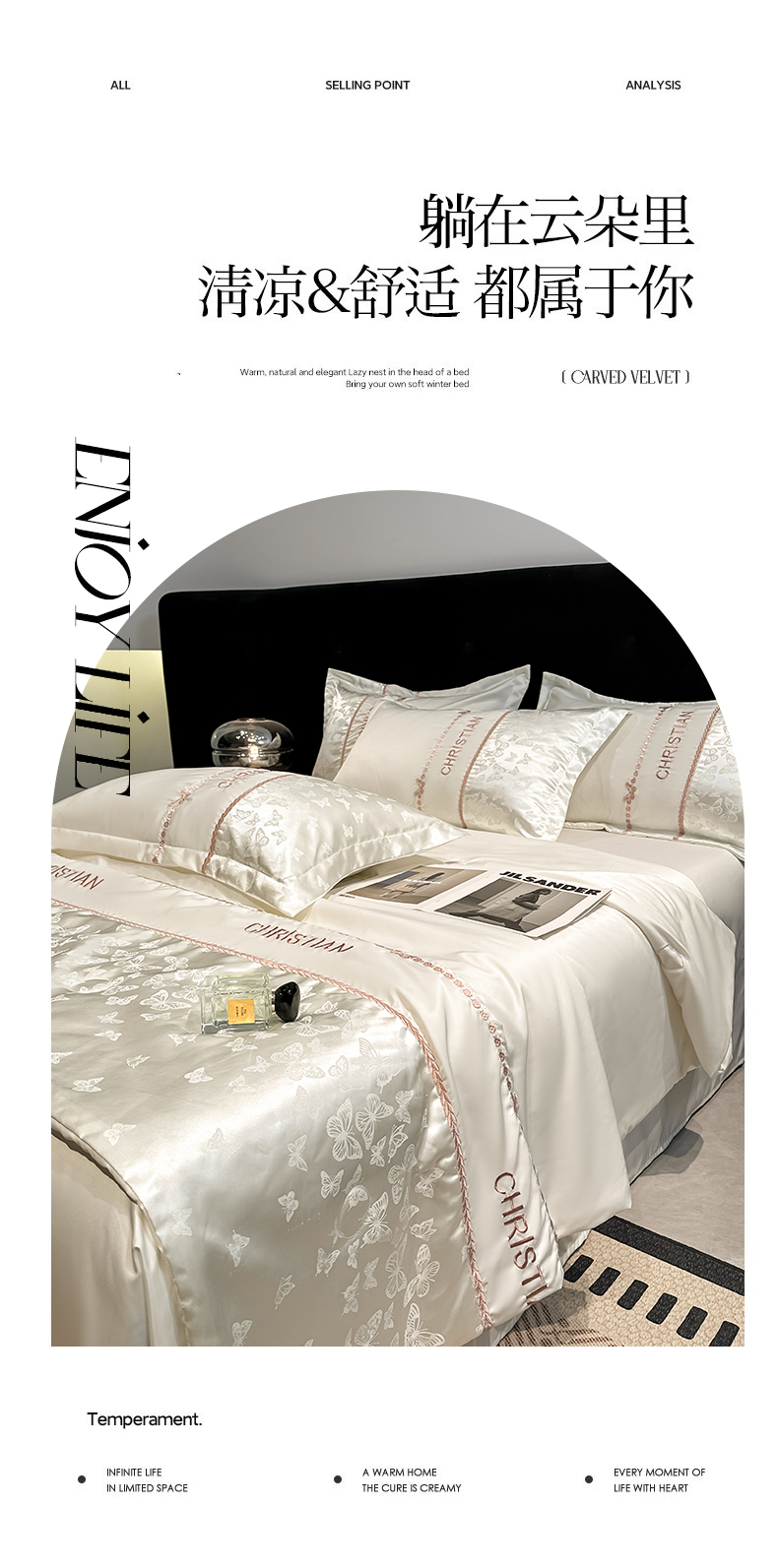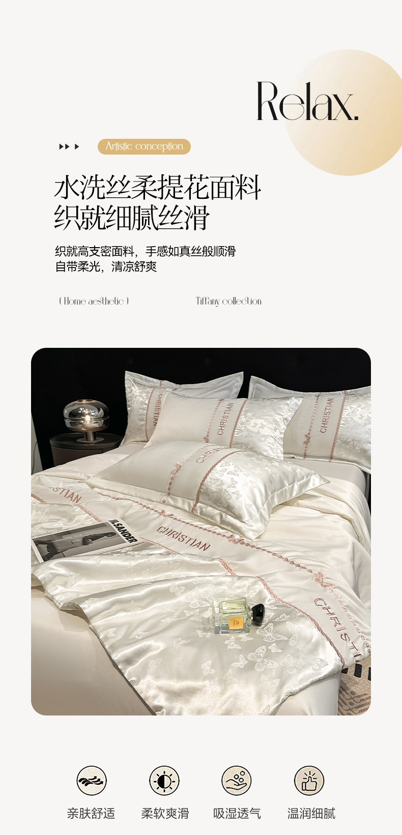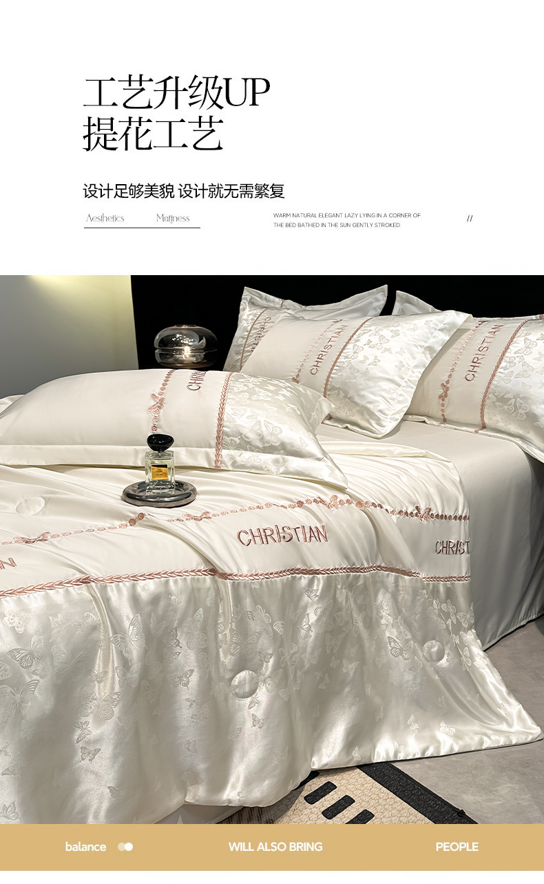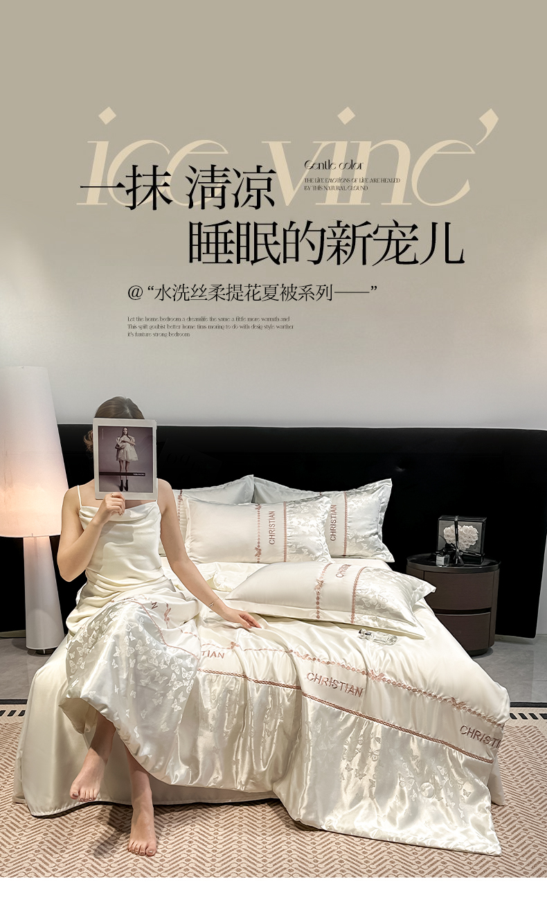 当前位置: 91家纺网 > 商品网购 > 床品套件 > 四件套 > 夏被四件套 > 金牛座家纺 2026新款水洗丝柔提花夏被空调被四件套 忆夏-奶白