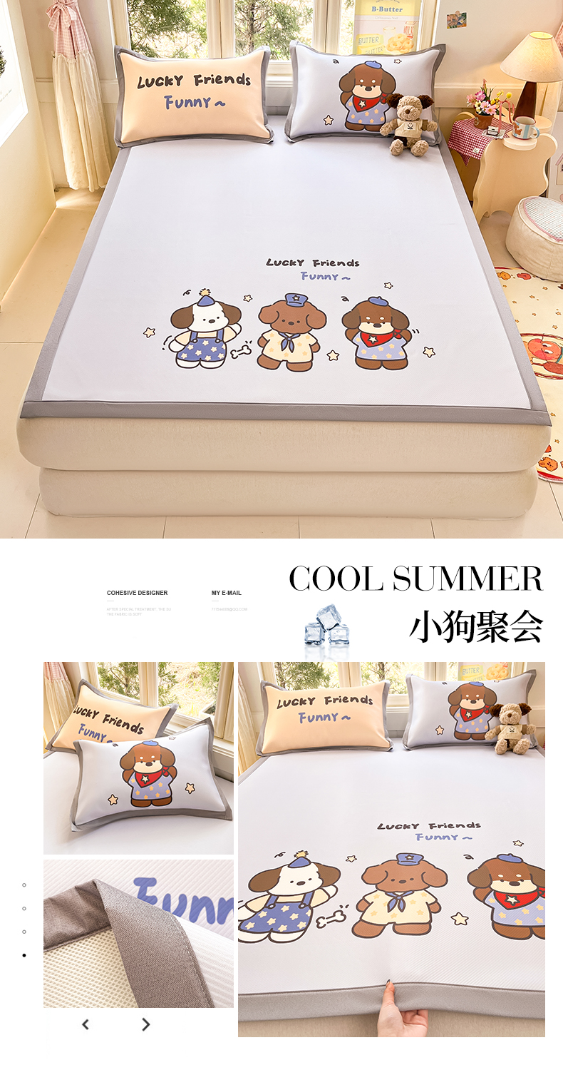 商品名称:川悦生活 【提供买家秀】2026新款凉豆豆冰丝大阪卡通凉席 小狗聚会