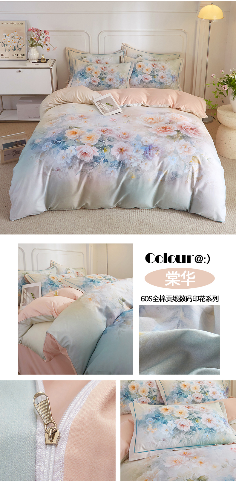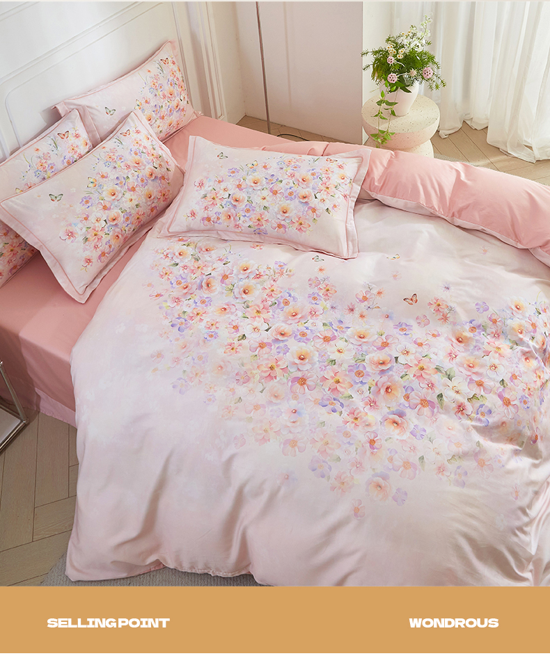 当前位置: 91家纺网 > 商品网购 > 床品套件 > 四件套 > 全棉普通四件套 > 锦彩家居 2026新款全棉纯棉印花60支贡缎新疆长绒棉四件套-山月记系列 棠华