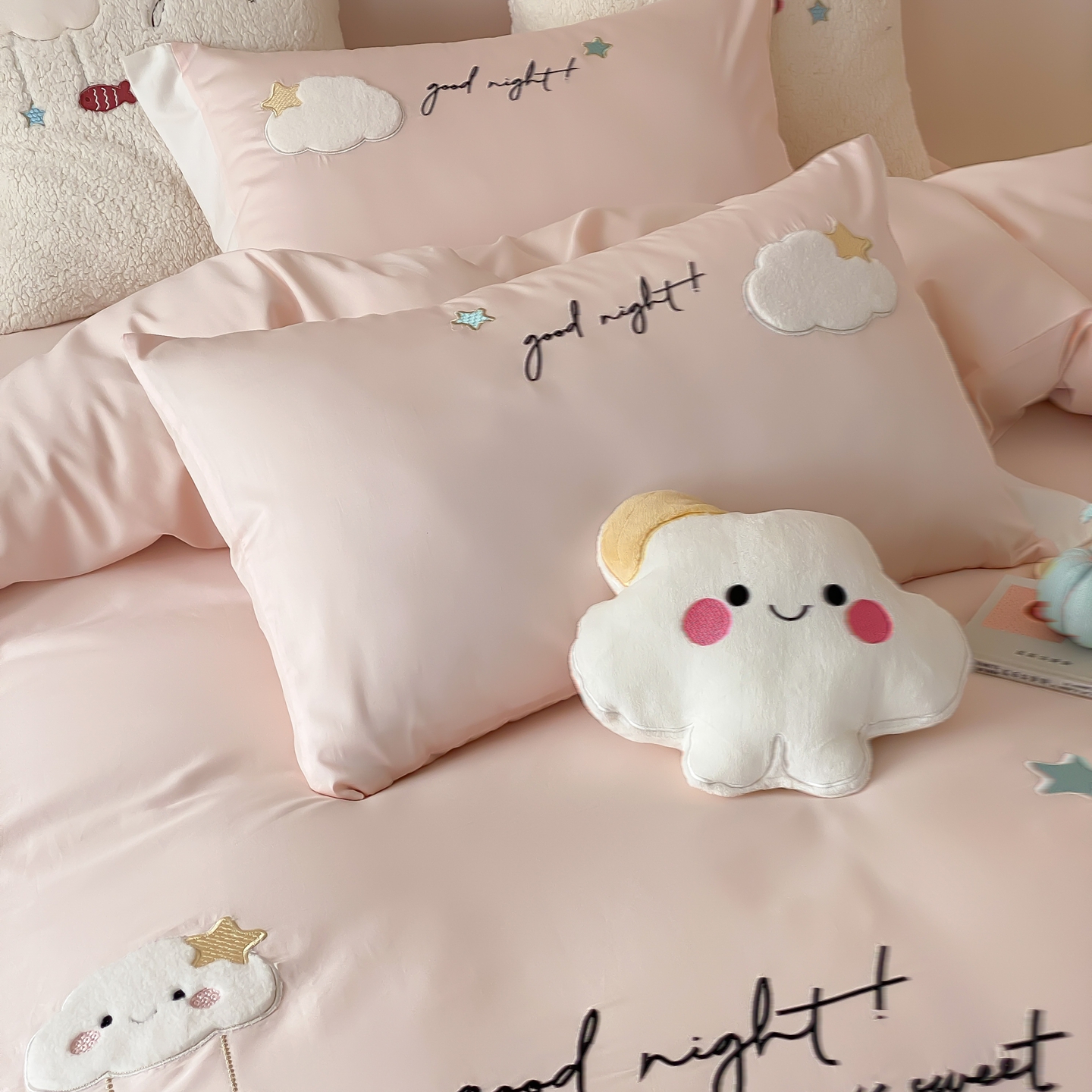 (总)星野 2026春夏新品100双股澳棉刺绣贴布绣四件套--喵满分,喵满分