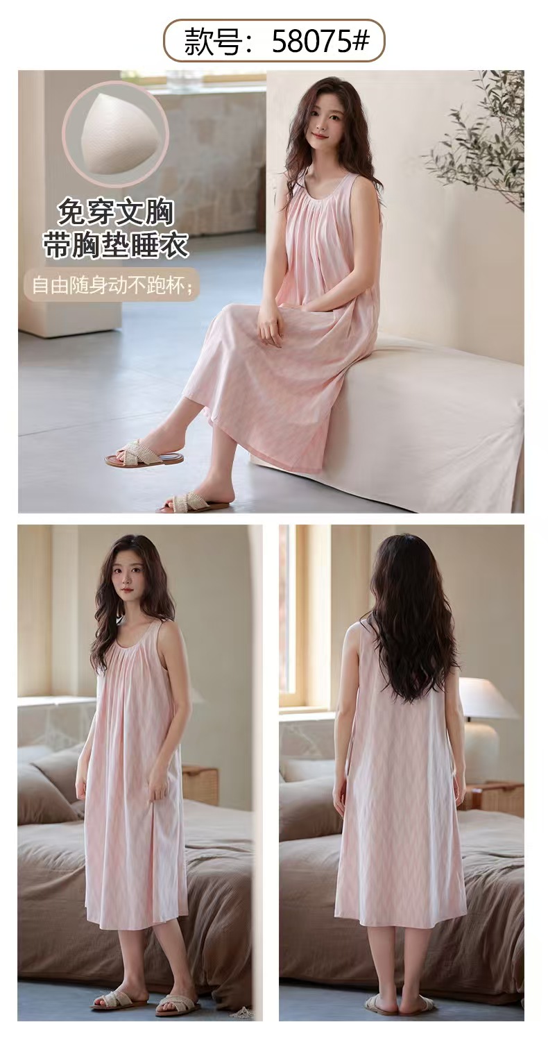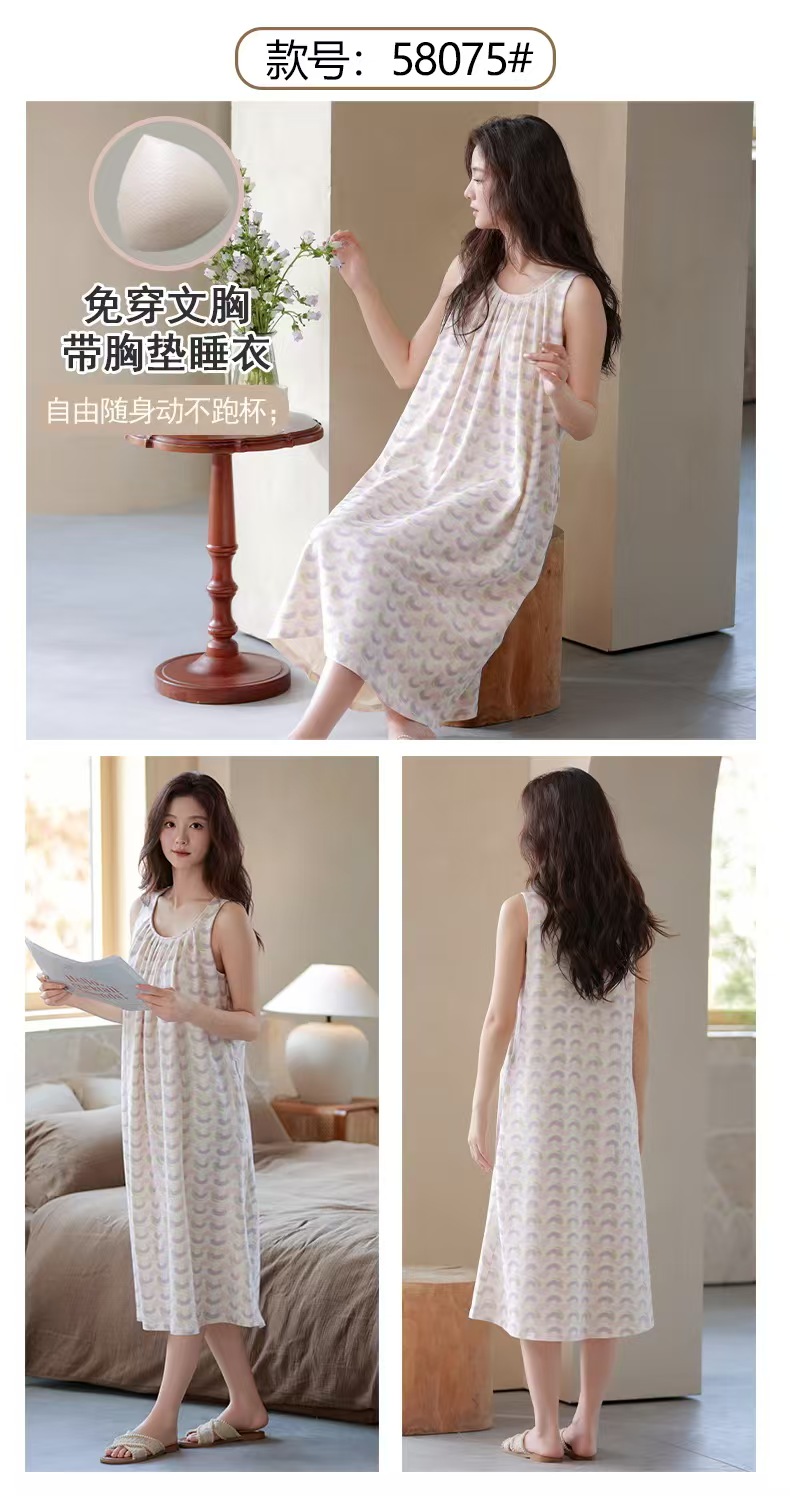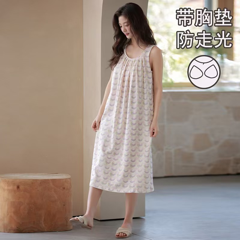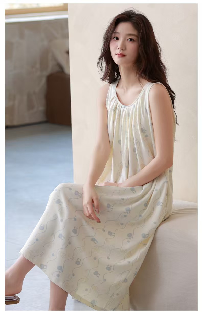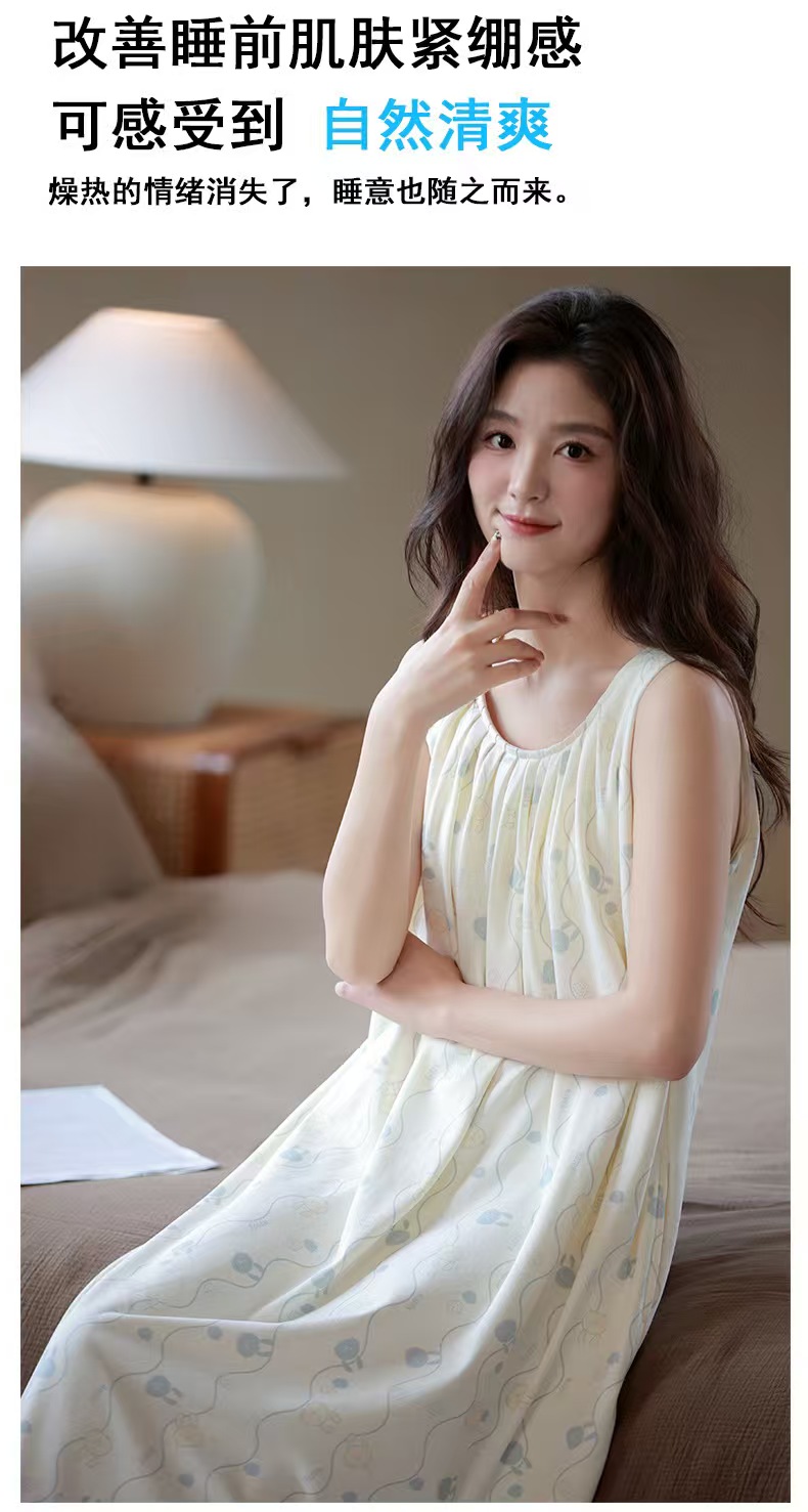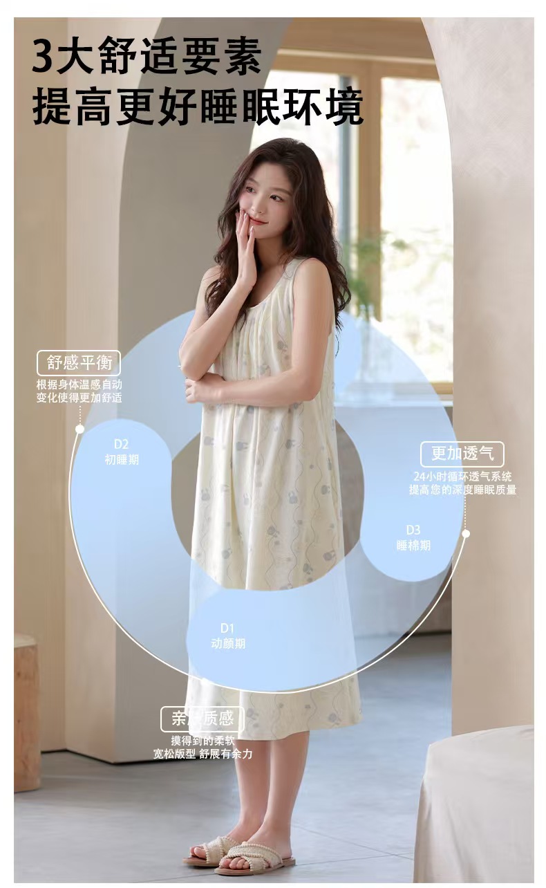 商品名称:(总)洛兰沙家居馆 日系睡裙女春秋莫代尔棉长袖长款家居服休闲宽松舒适大码居家睡衣