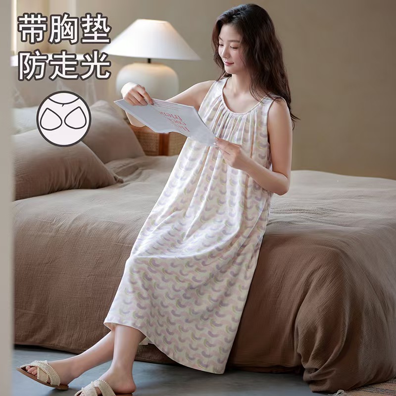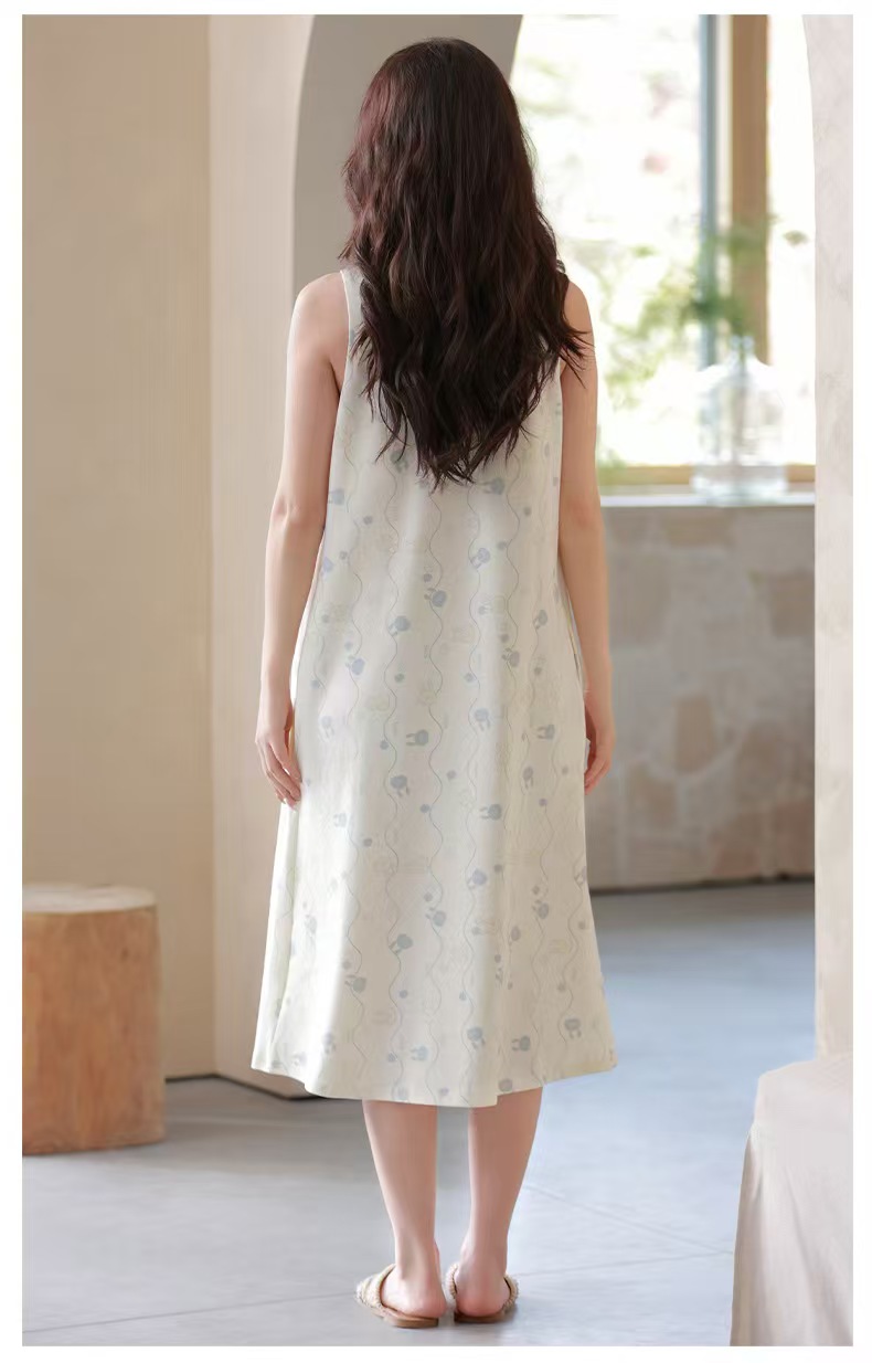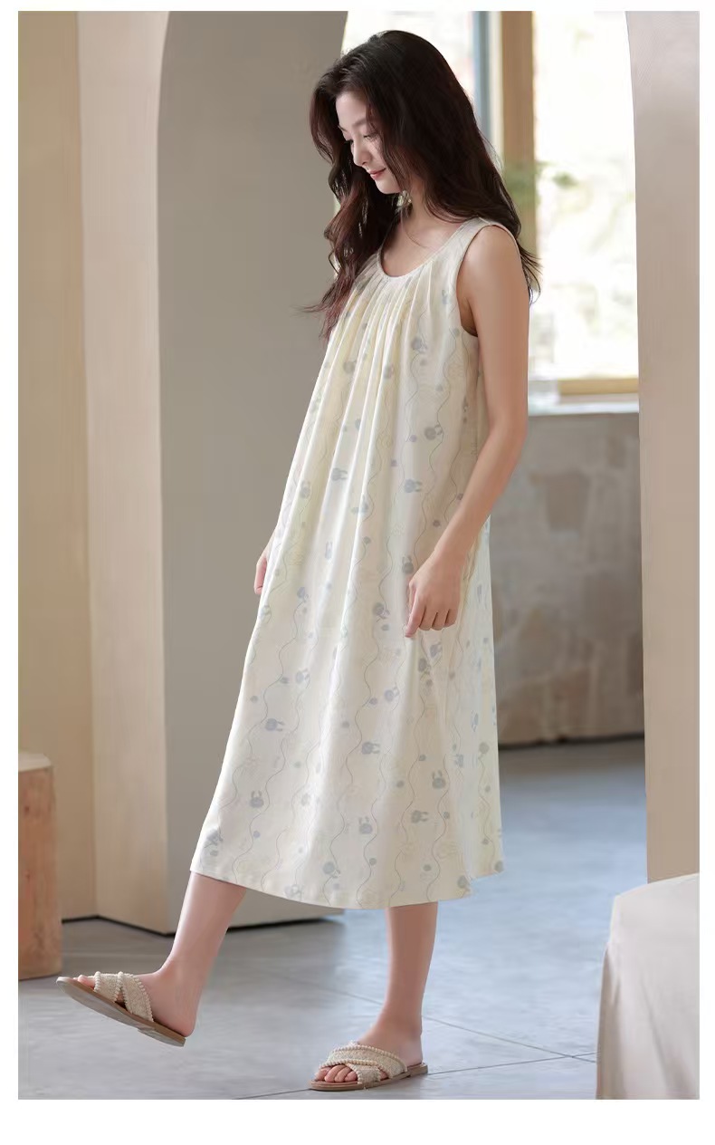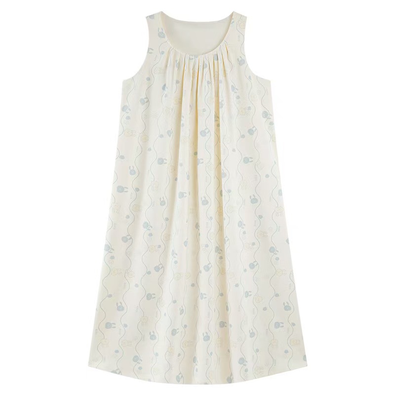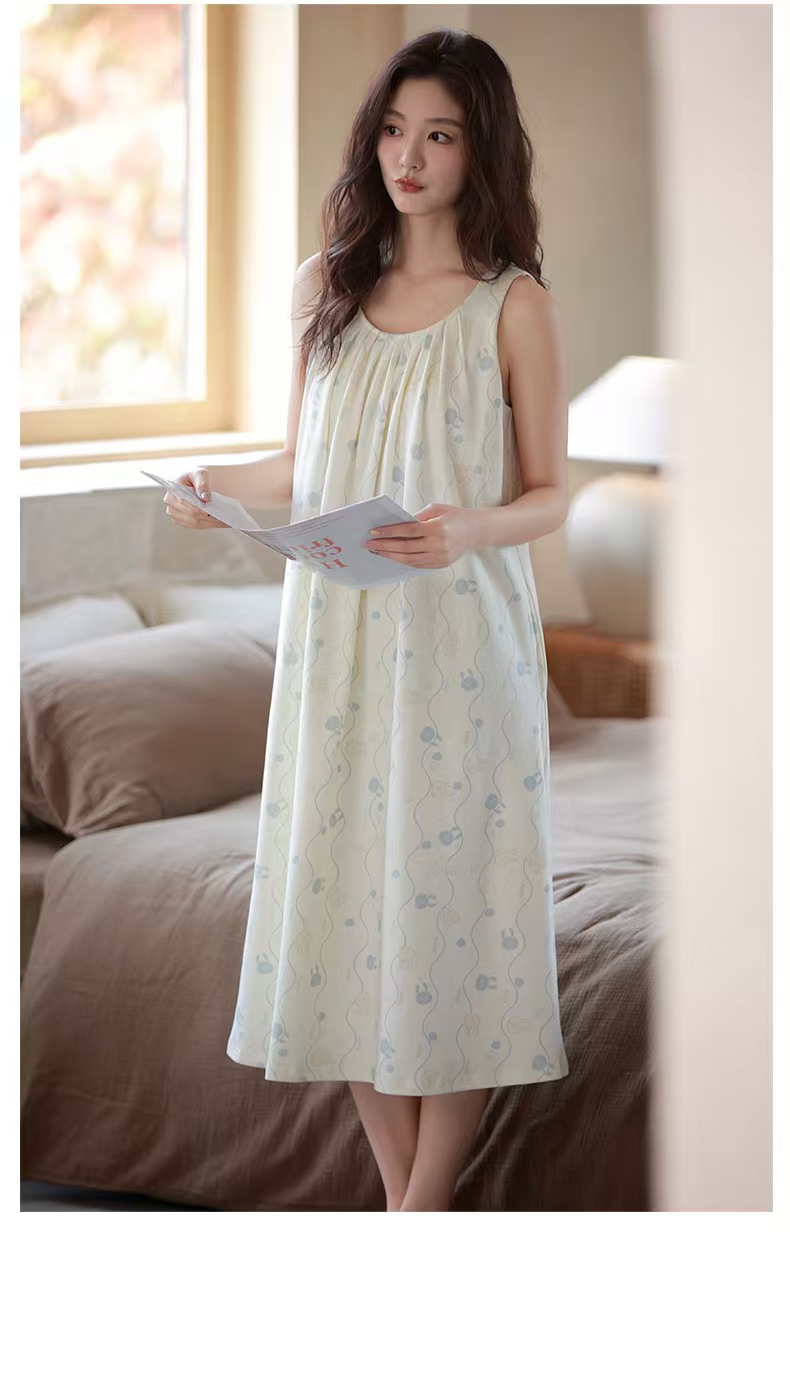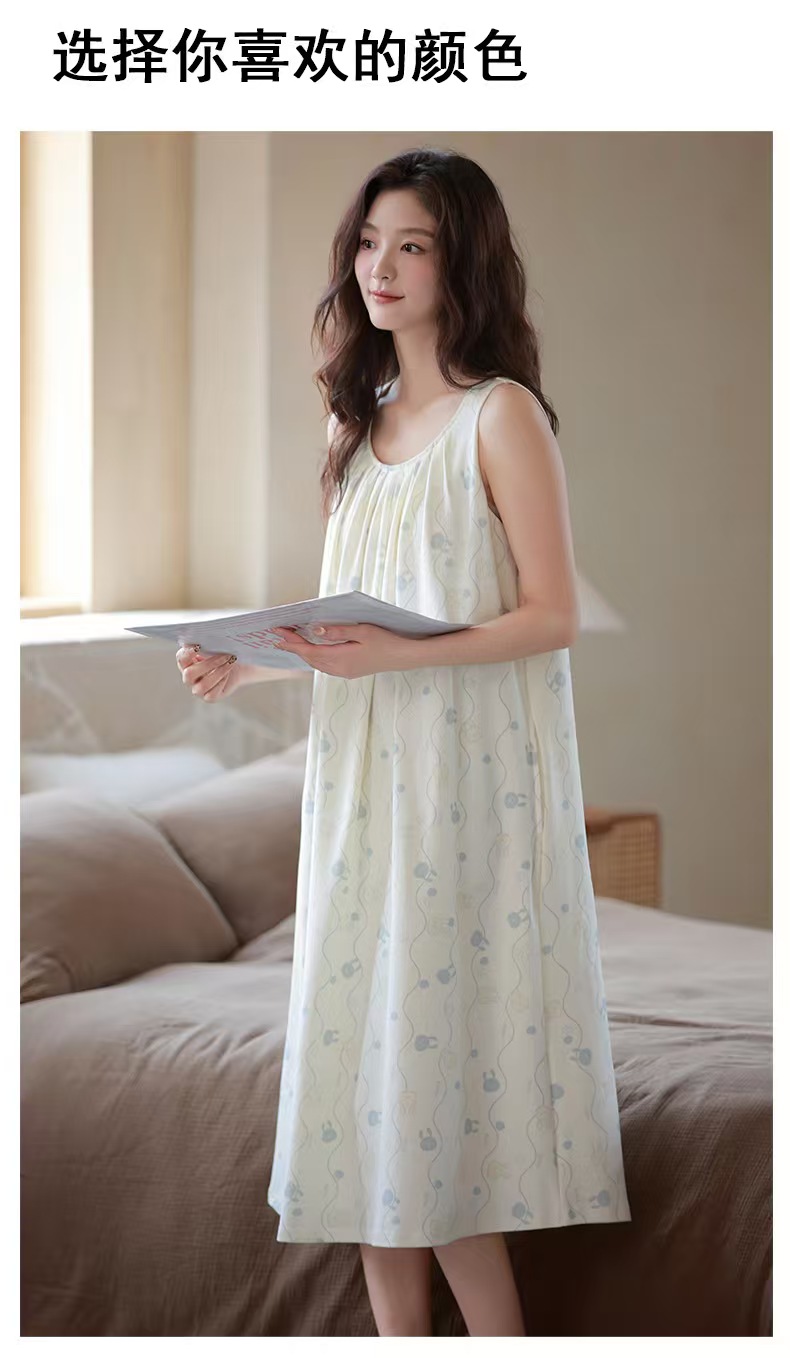(总)洛兰沙家居馆 新款睡裙夏季花边针织棉公主风家居服宽松女士棉全棉连衣裙可外穿,白色