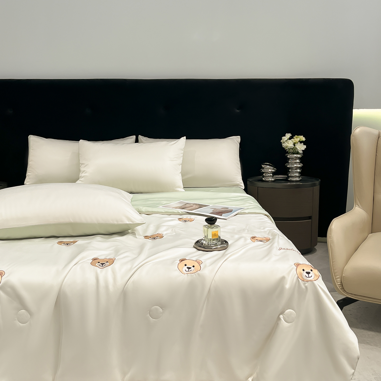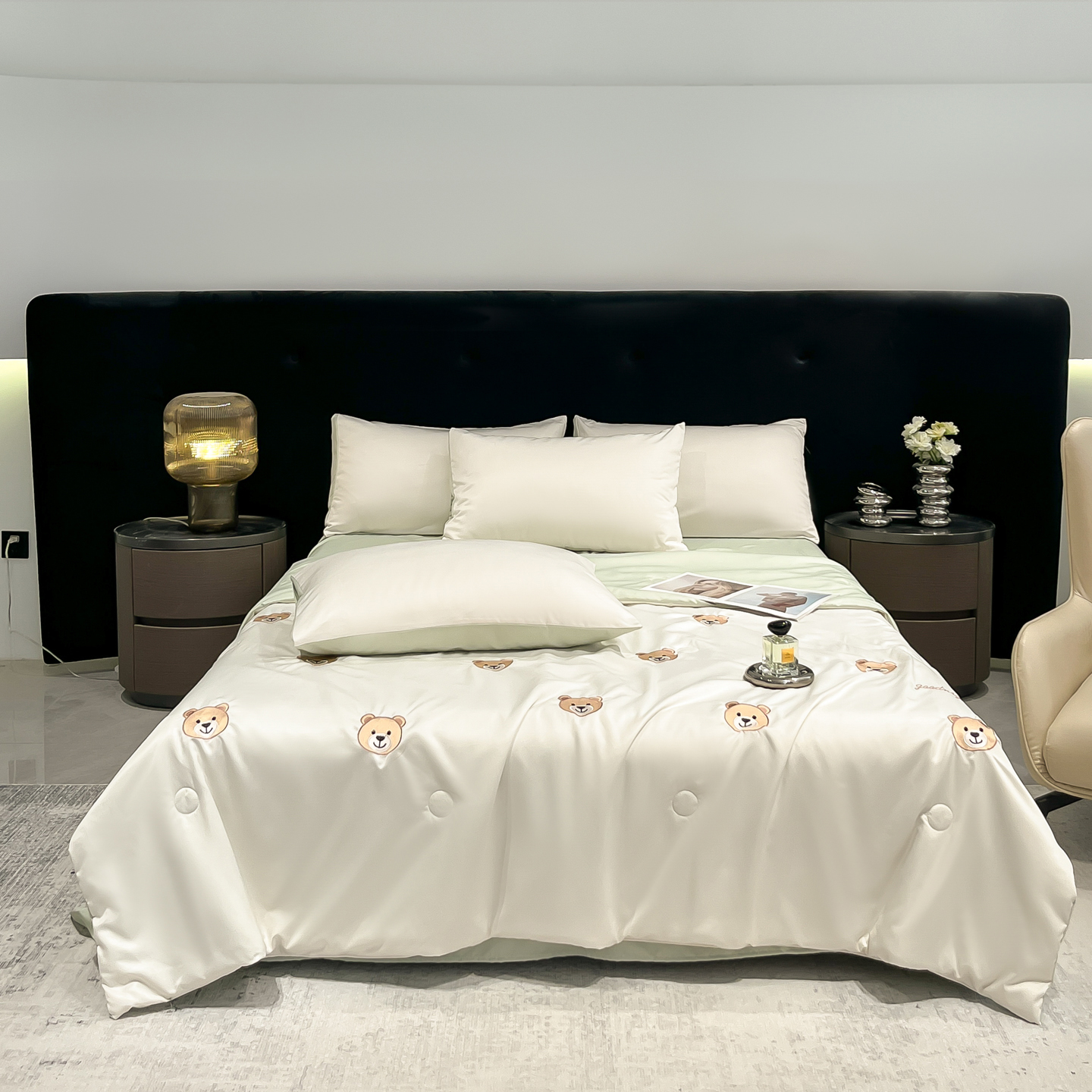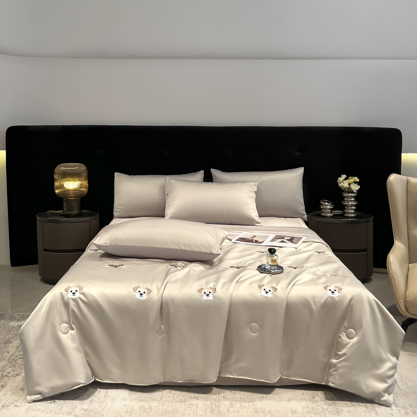 当前位置: 91家纺网 > 商品网购 > 床品套件 > 四件套 > 夏被四件套 > 红嘴企鹅 2026新款水洗冰丝刺绣夏被四件套 夏被-小狗 清新绿