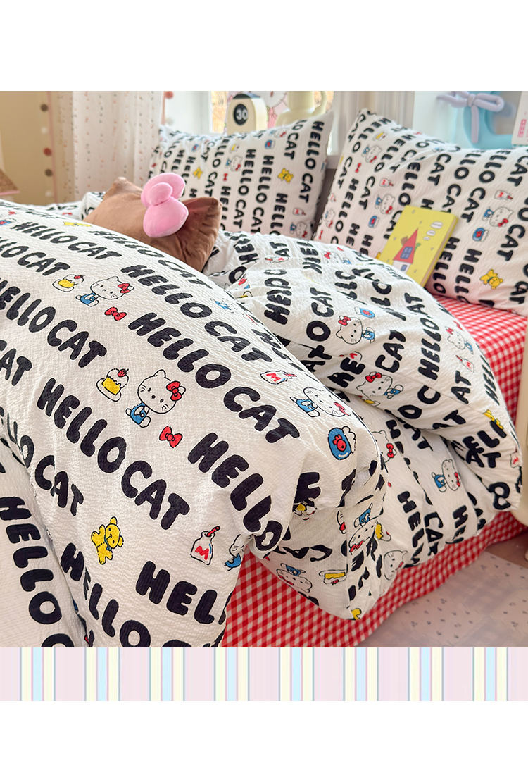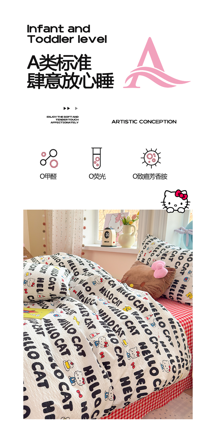 (总)星禾优选 2025新款三丽鸥加厚水洗双层纱花边款四件套,红果酱kt,面包集合,元气kt,钢琴kt,kt酪-蓝,千层家族,ky贩卖机,黑调格kt,奶酪 kt
