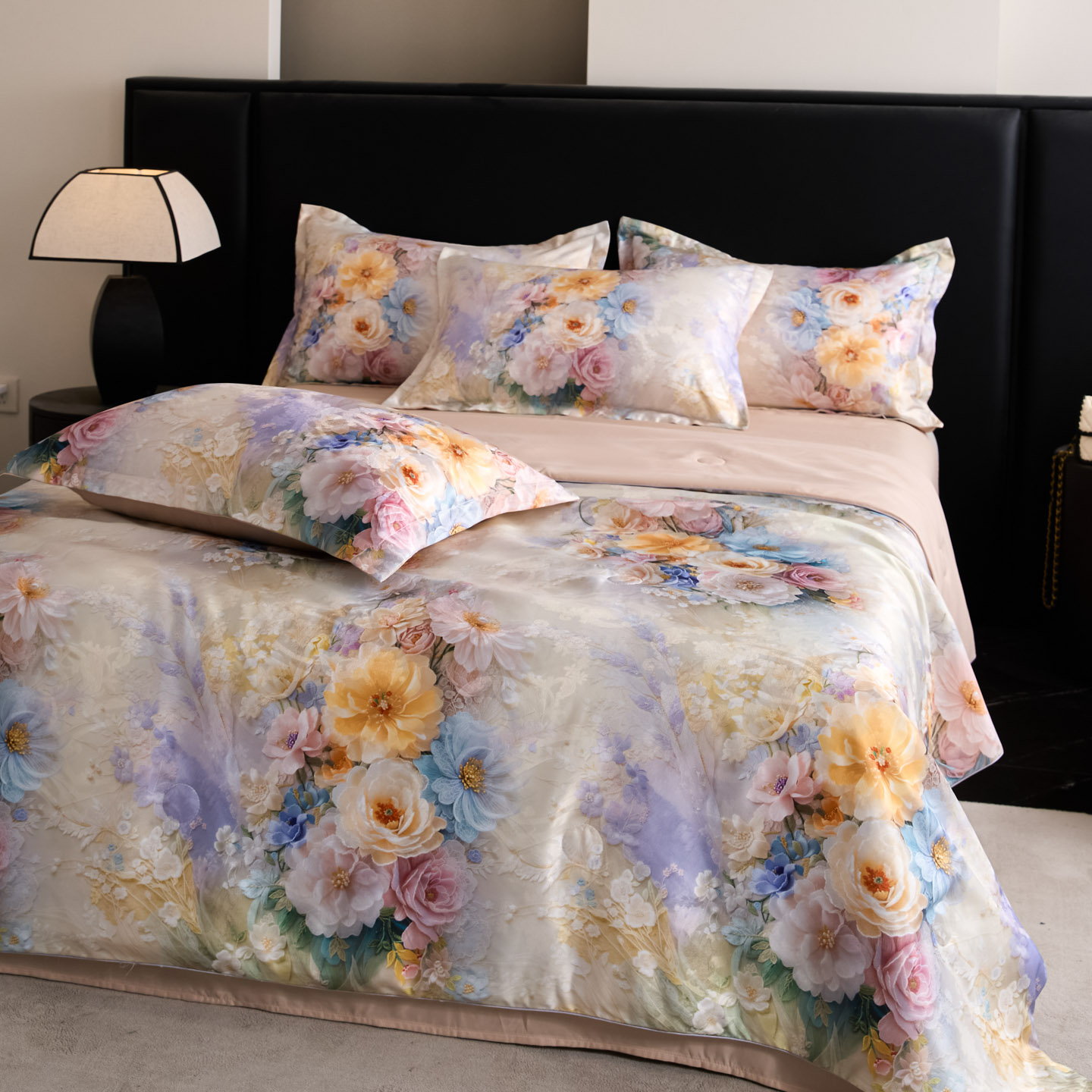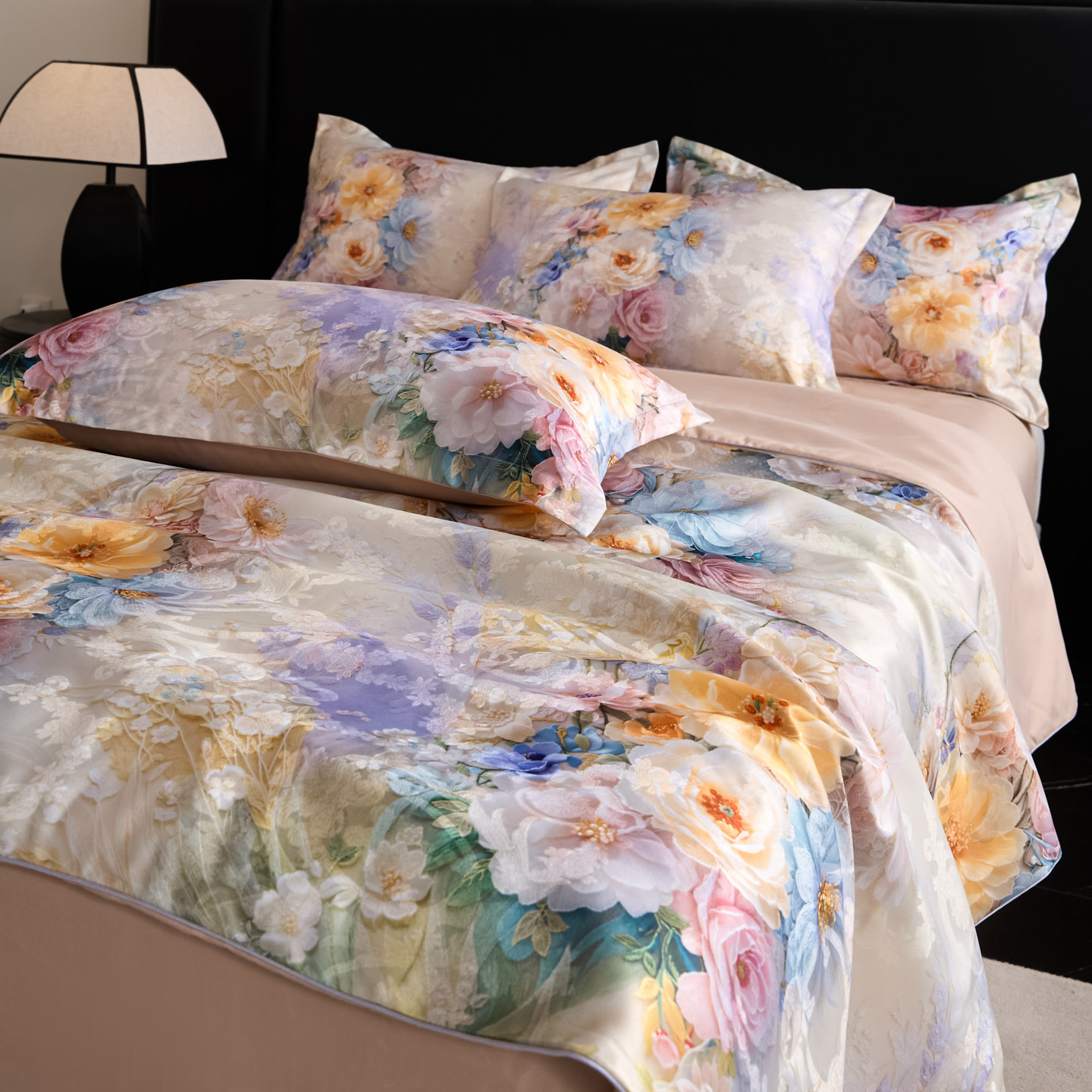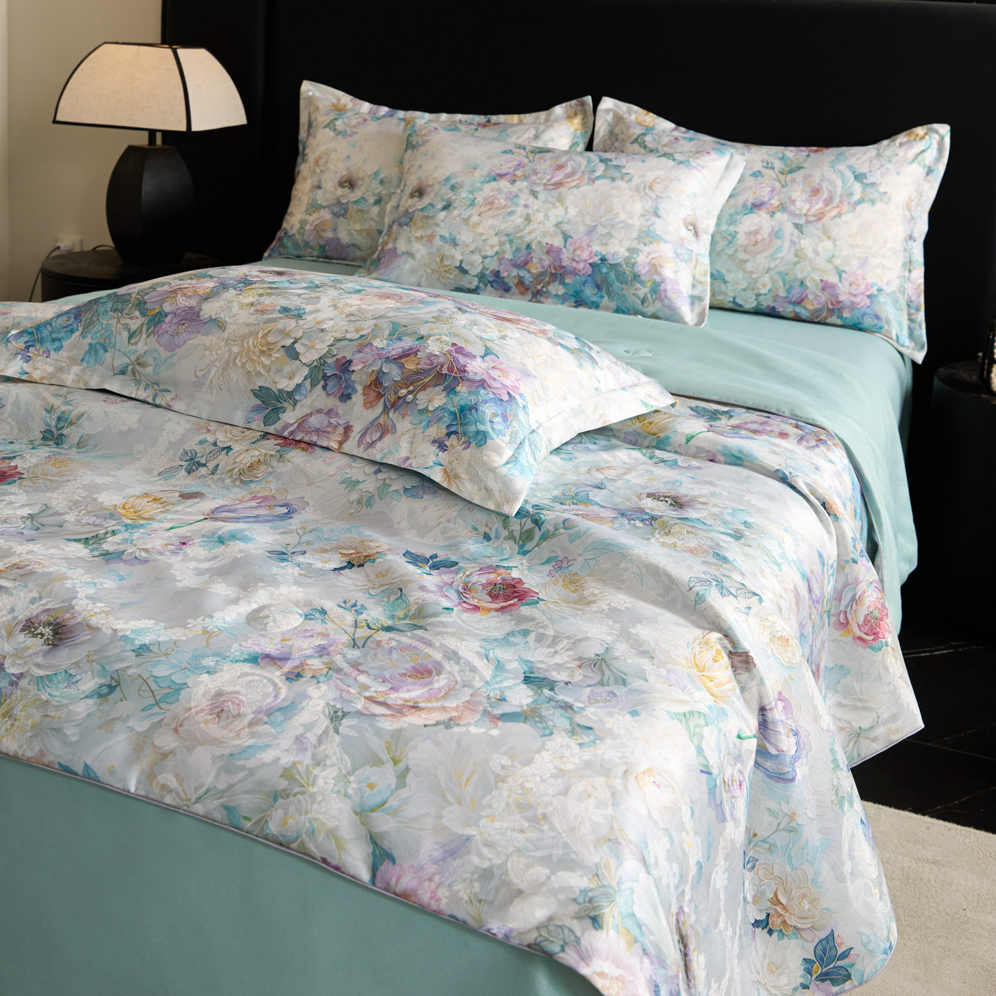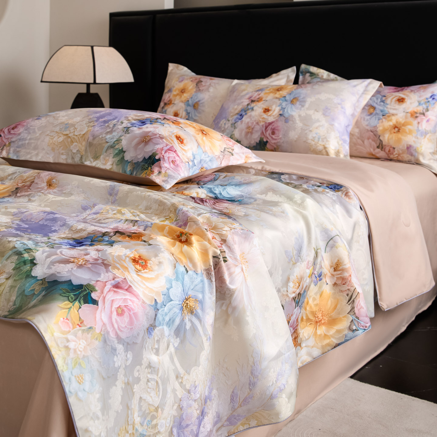 (总)莱欧纳家纺 2025新款质感多色提花四件套,克罗花雨,忆嘉南