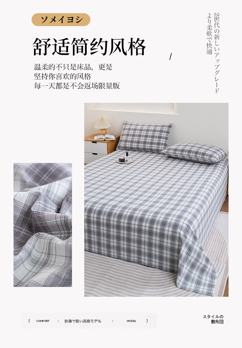 当前位置: 91家纺网 > 商品网购 > 床上用品 > 床单 > 居美良品 2026新款100%全棉色织水洗棉A类纯棉床单单品床单床单单件 烟雨-灰