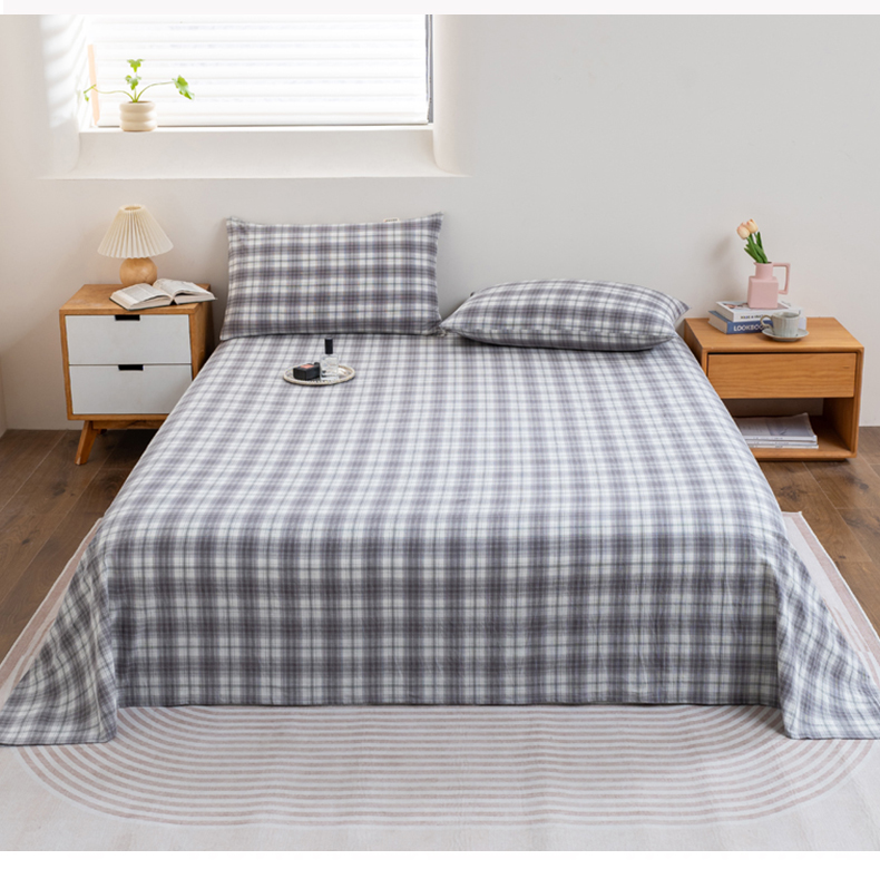 居美良品 2026新款100%全棉色织水洗棉A类纯棉床单单品床单床单单件 烟雨-灰