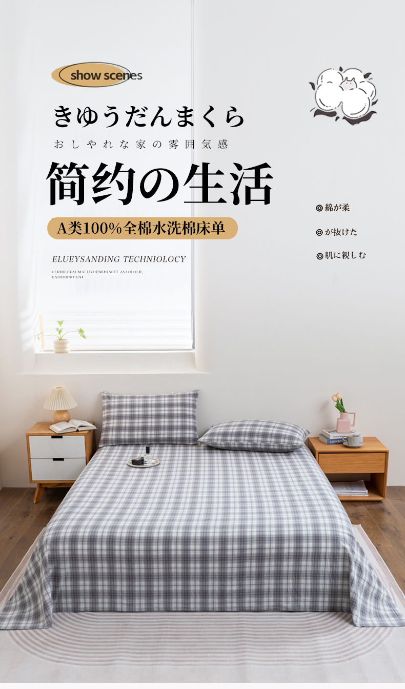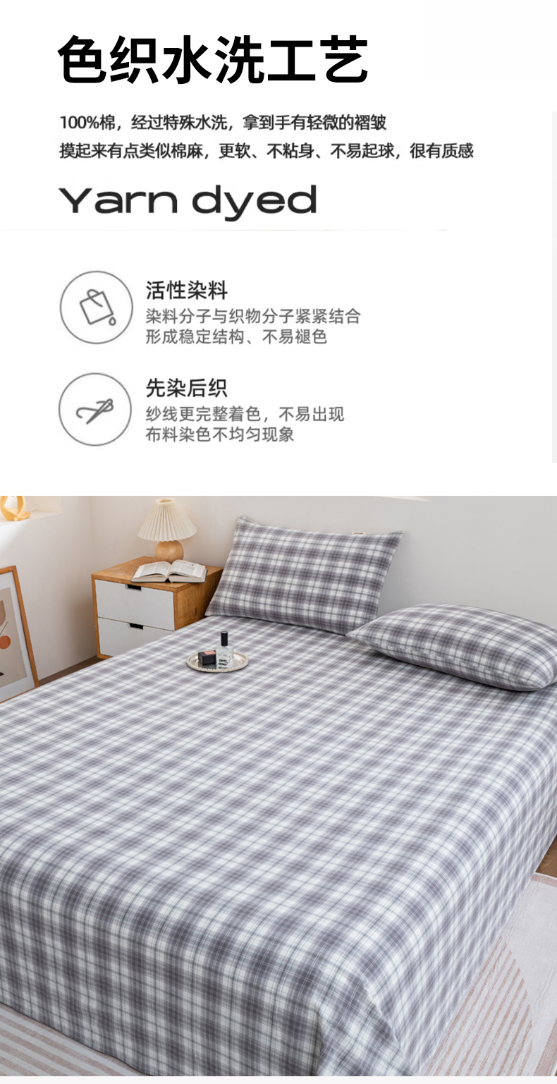 (总)居美良品 2026新款100%全棉色织水洗棉A类纯棉床单单品床单床单单件,碧波青,高冷灰,灰小格,经典灰,静雅-蓝,静雅-绿,静雅-玉,咖小格,蓝小格,绿小格,迷雾-蓝,奶茶咖,奶昔-白,浅水蓝,珊瑚玉,松石绿,香槟咖,烟雨-灰