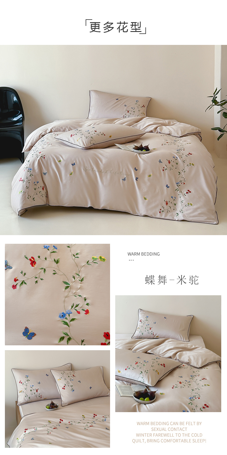 (总)波比可可 2026春夏新款100支50s双股长绒棉纯棉全棉居家轻奢刺绣四件套,枝蔓 米驼,枝蔓 驼,蝶舞 咖,蝶舞 米驼,花影 咖,花影 蓝