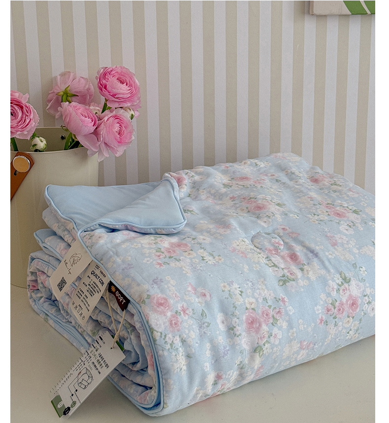 • 91家纺网 家纺一手货源 找家纺 麦伦家居 2026新品双层纱小冰皮夏被夏凉被空调被 蓝雾玫瑰