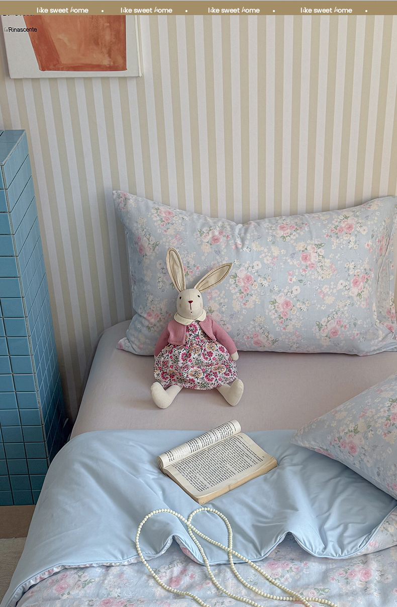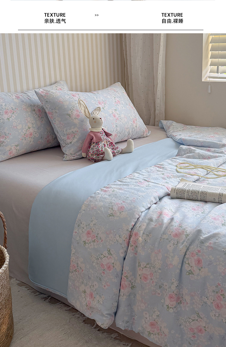 (总)麦伦家居 2026年春夏新款全棉纯棉有氧双层纱印花四件套-第二波,组合图仅供展示-不可下单,白露,花香粉,萌星粉,木马乐园,俏皮熊猫,甜梦汪汪,兔兔茉莉,心动狗狗,云锦兔-粉,云锦兔-蓝