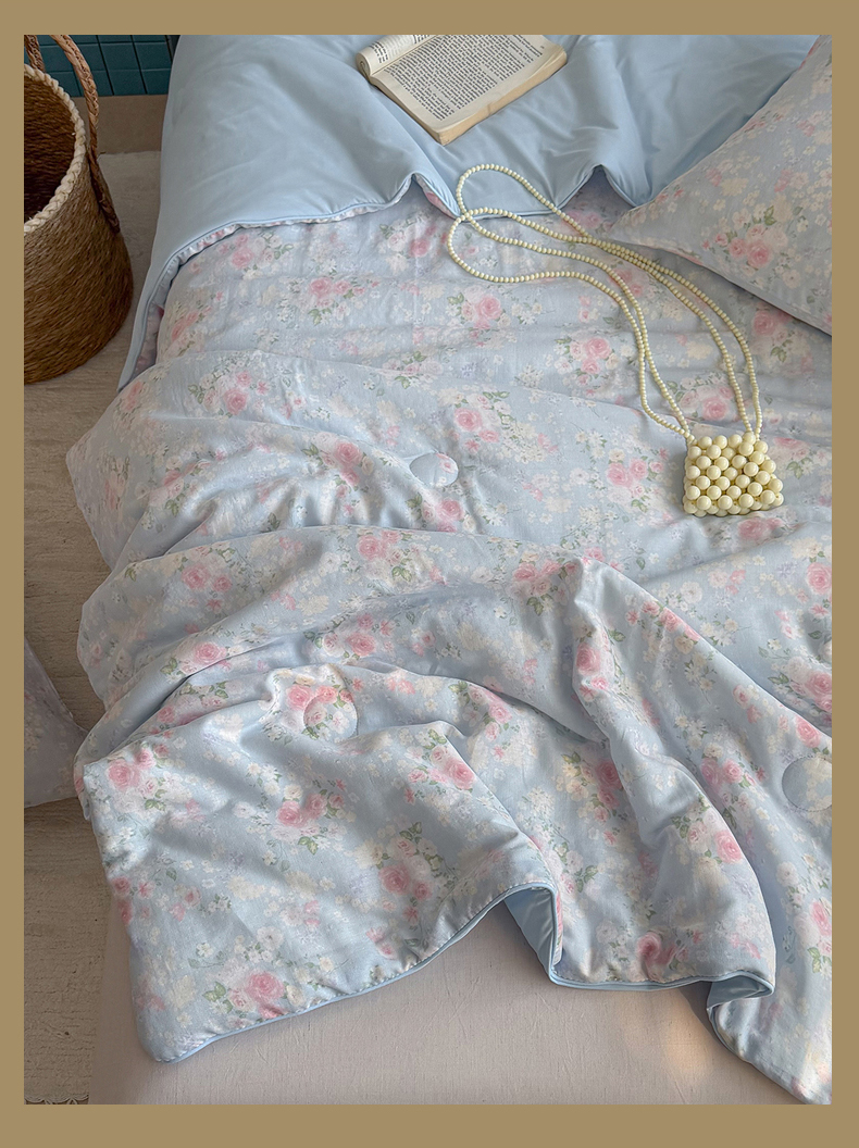 麦伦家居 2026新品双层纱小冰皮夏被夏凉被空调被 蓝雾玫瑰