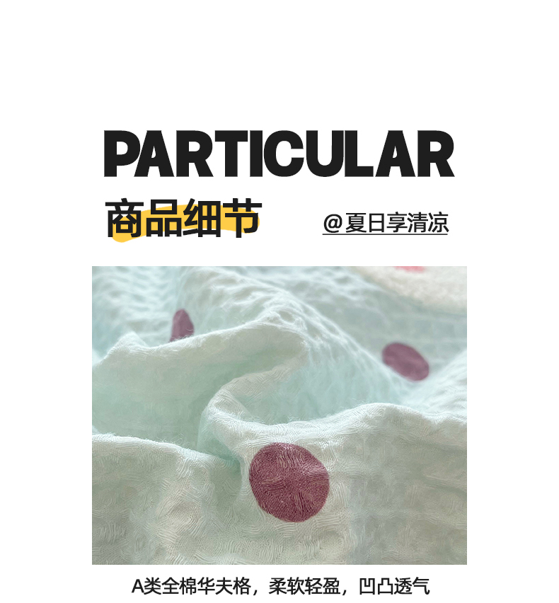 (总)莱宁被业 2026新款冰纱系列全棉双层纱锦氨凉感丝夏被,草莓冰纱,凤梨冰纱,海盐冰纱,蓝莓可露丽,芒果可露丽,蜜瓜可露丽,抹茶冰纱,拿铁冰纱,椰椰冰纱,芋泥冰纱,组合图