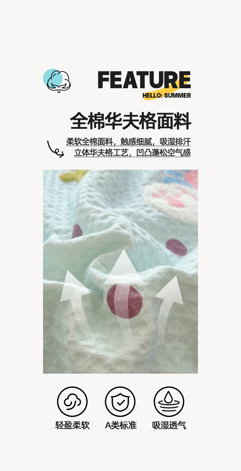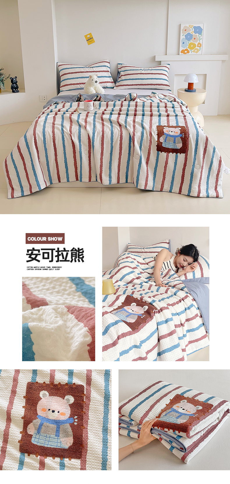 (总)莱宁被业 2026新款A类全棉华夫格提花毛巾绣卡通大豆夏被,安可拉熊,粉色小喵,好柿花生,莓莓狗,萌宠西高地,苹果小熊,条纹木马,圆点小狗,组合图