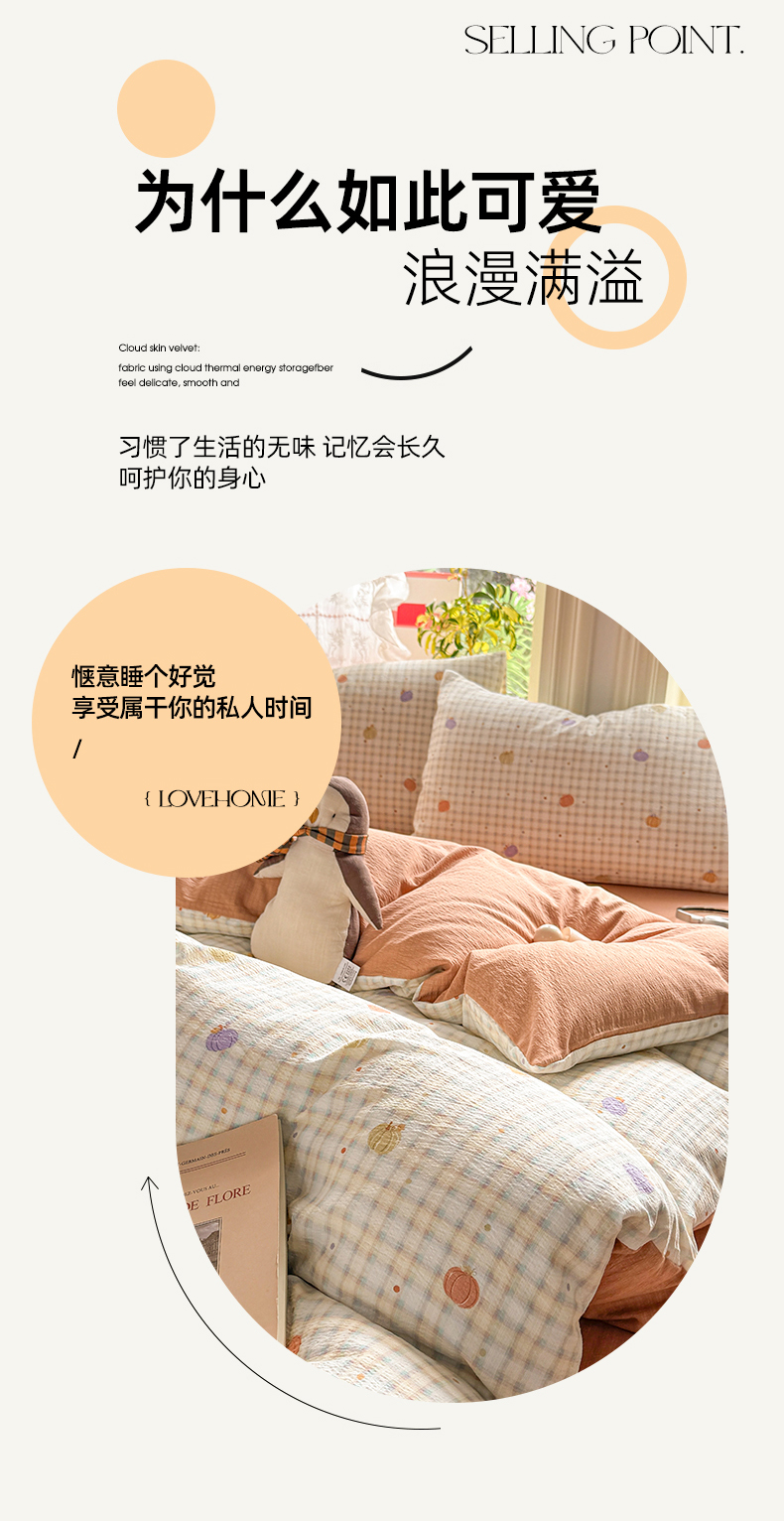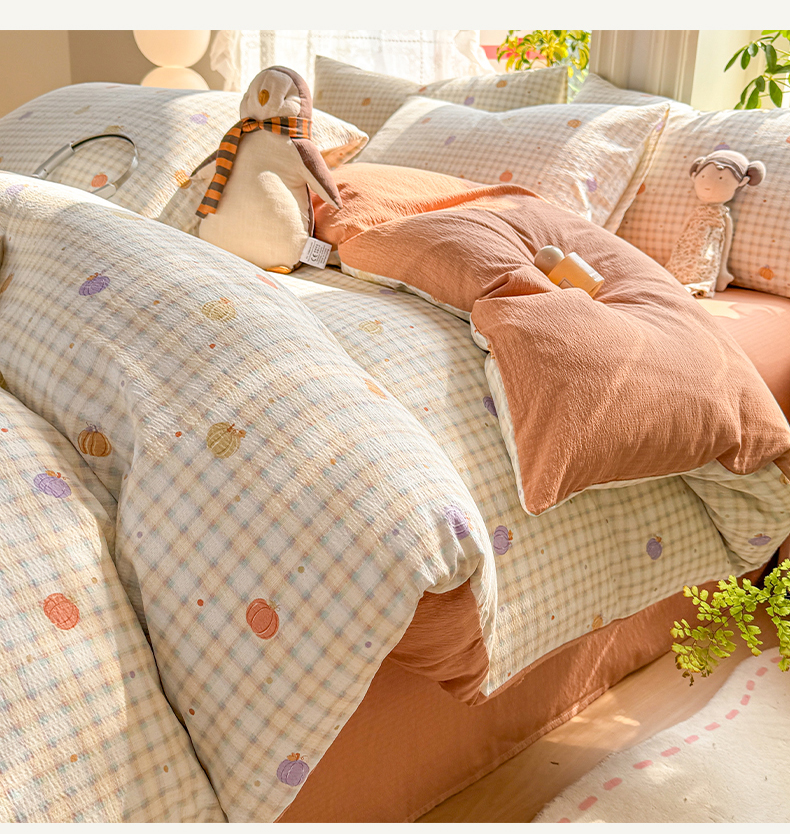 当前位置: 91家纺网 > 商品网购 > 床品套件 > 四件套 > 化纤普通四件套 > 丝芙妮家居 2026新款皱皱棉双层纱泡芙棉四件套 缤纷南瓜