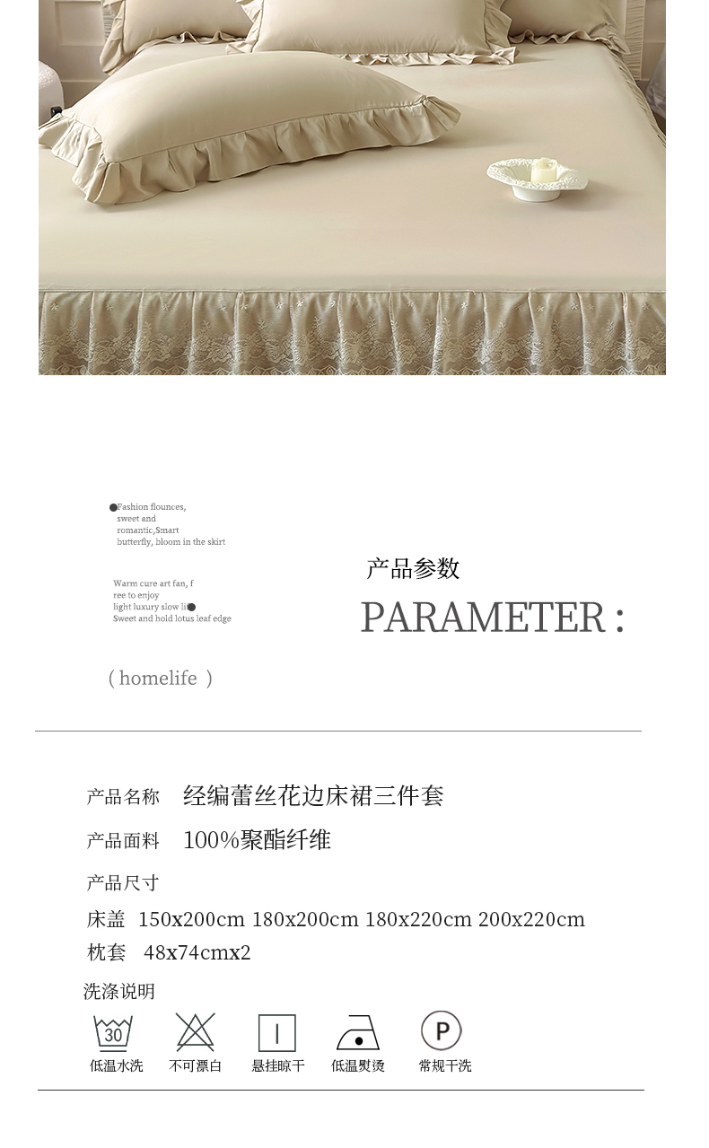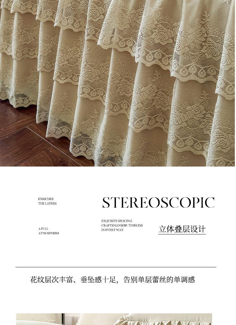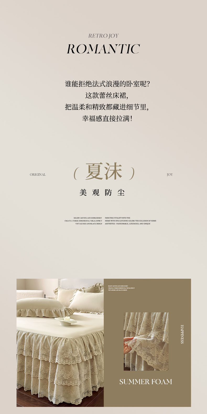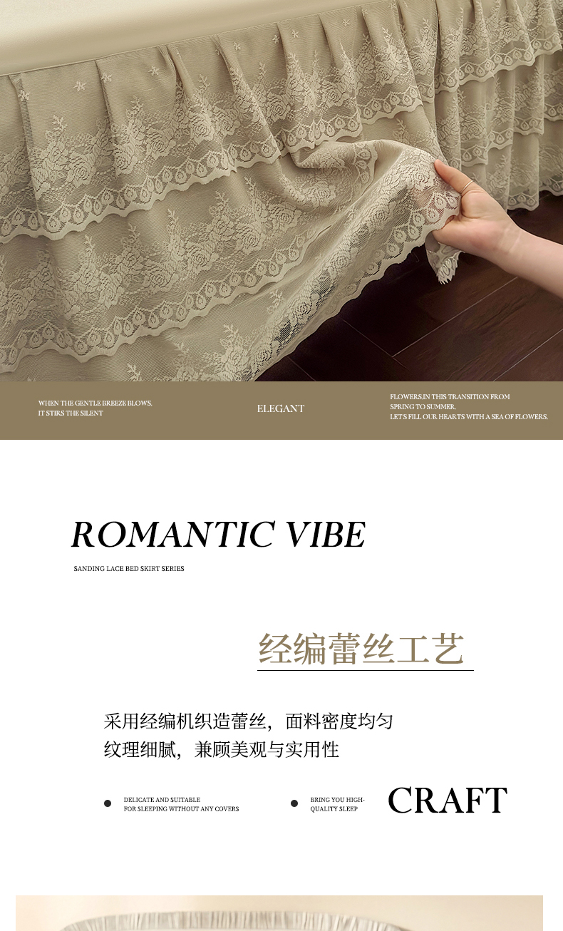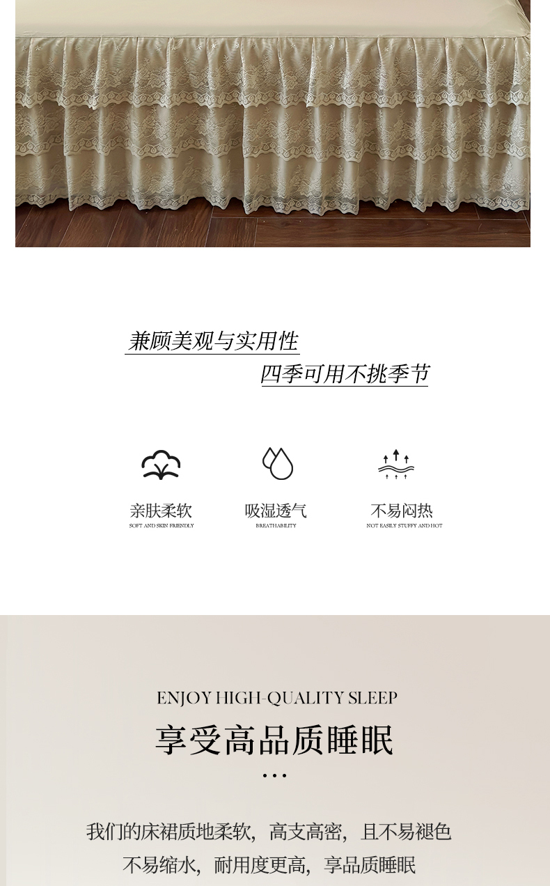 商品名称:乐朵家居 2026新款 26-1 夏沫 蕾丝床裙 卡其
