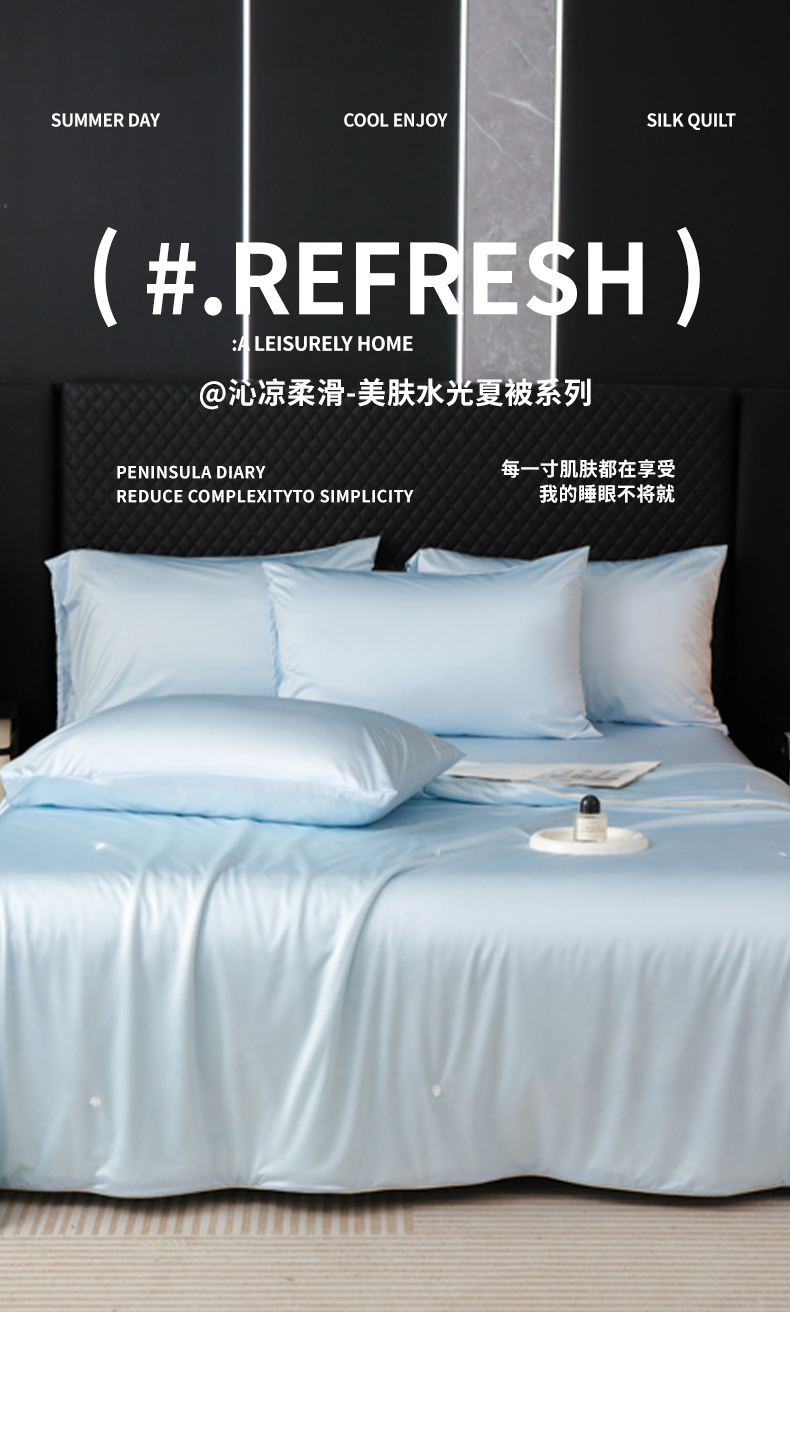 爱彼家纺 2026夏季新款流锻亲肤水光夏凉被高级感单夏被-可定制蚕丝夏被 奢雅冰蓝