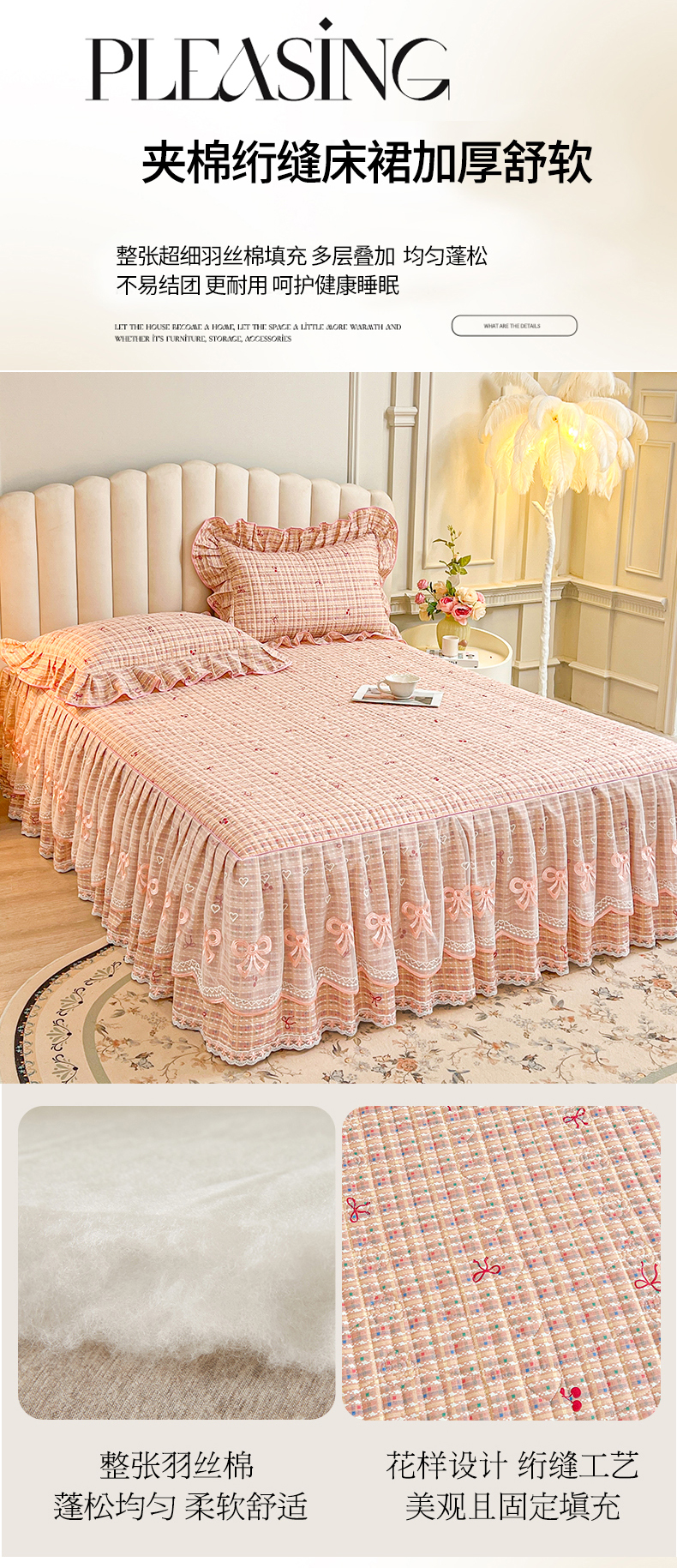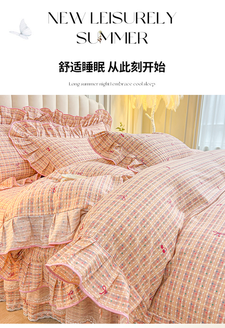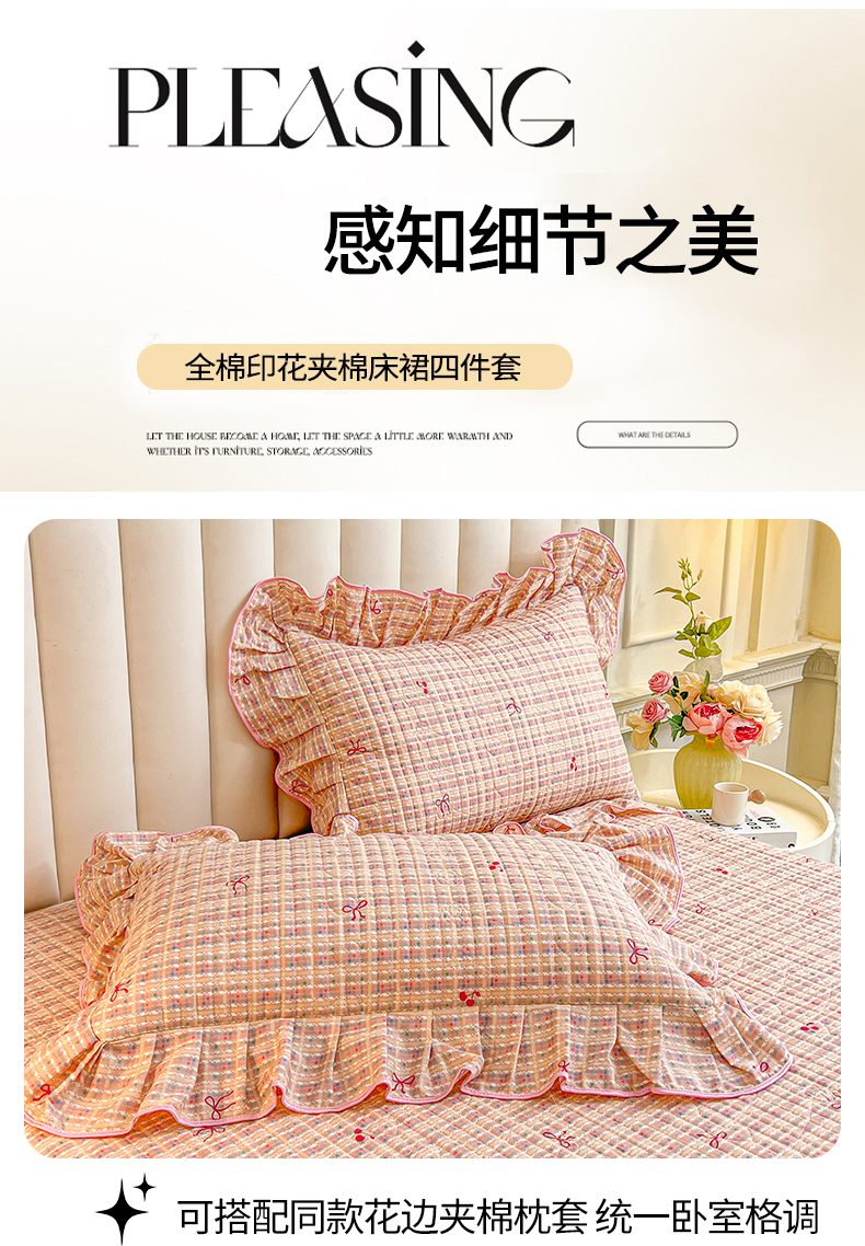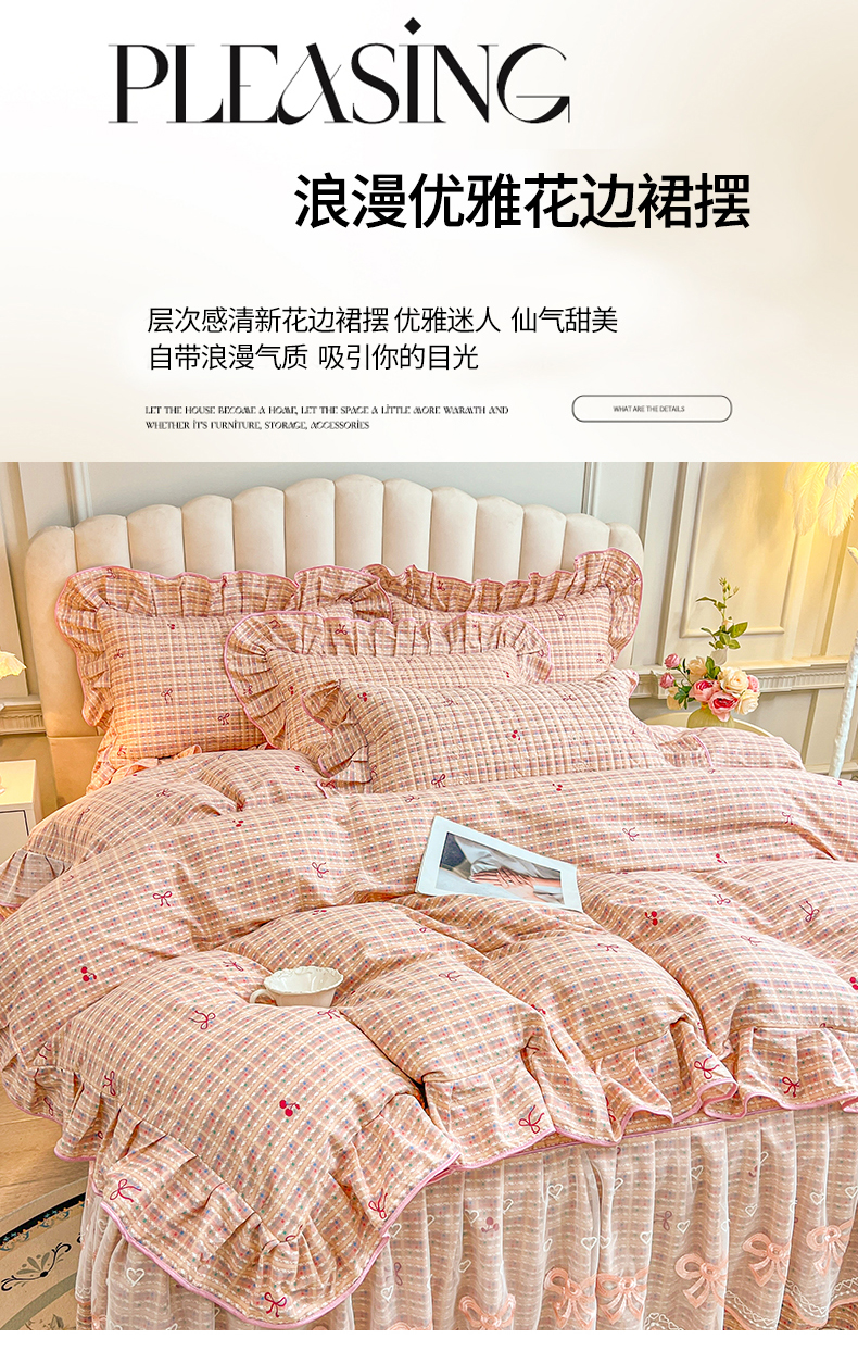 当前位置: 91家纺网 > 商品网购 > 床品套件 > 四件套 > 全棉普通四件套 > 宜凡家纺 2026新款全棉印花公主风夹棉床裙四件套② 樱桃蝴蝶结
