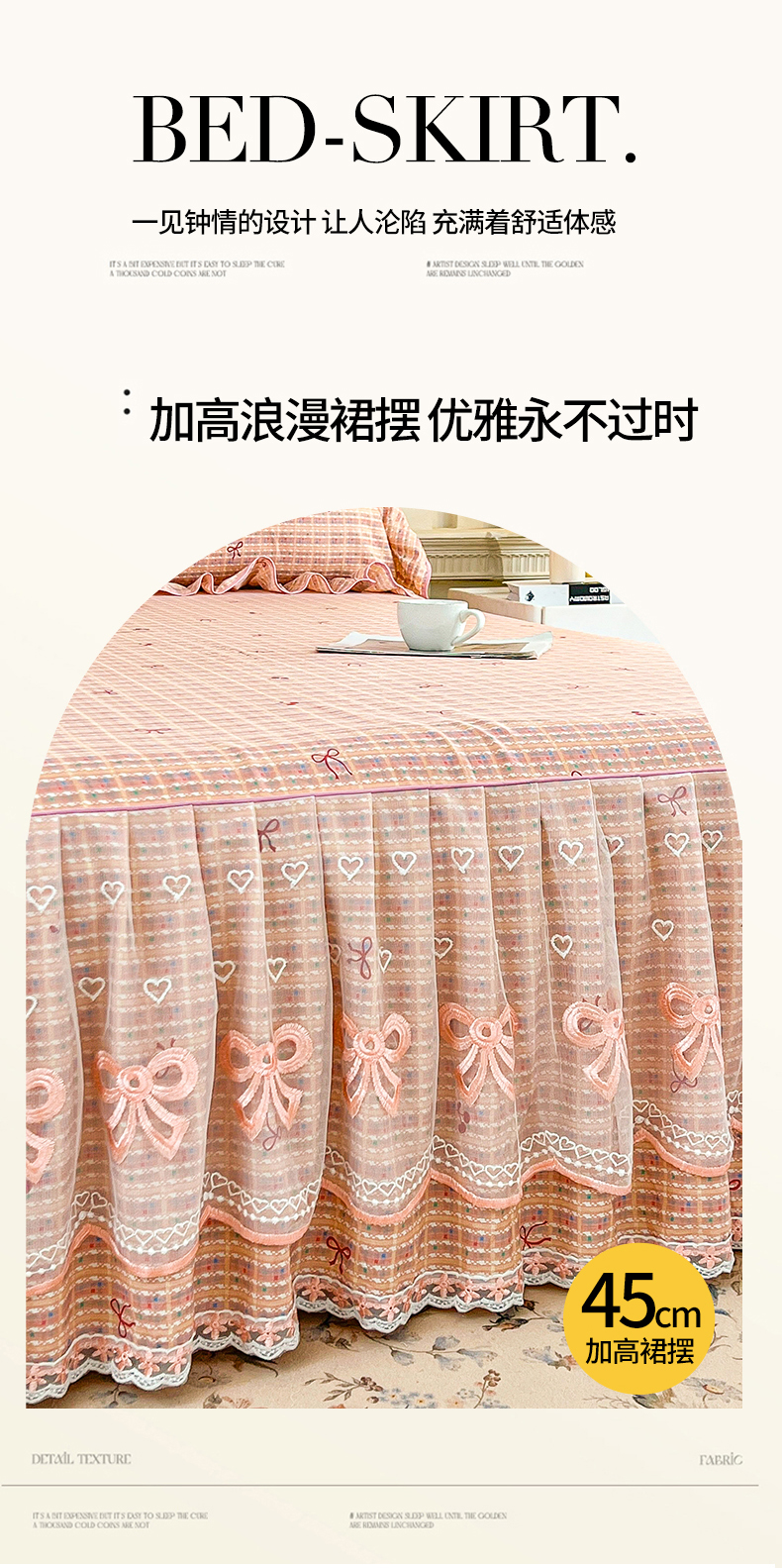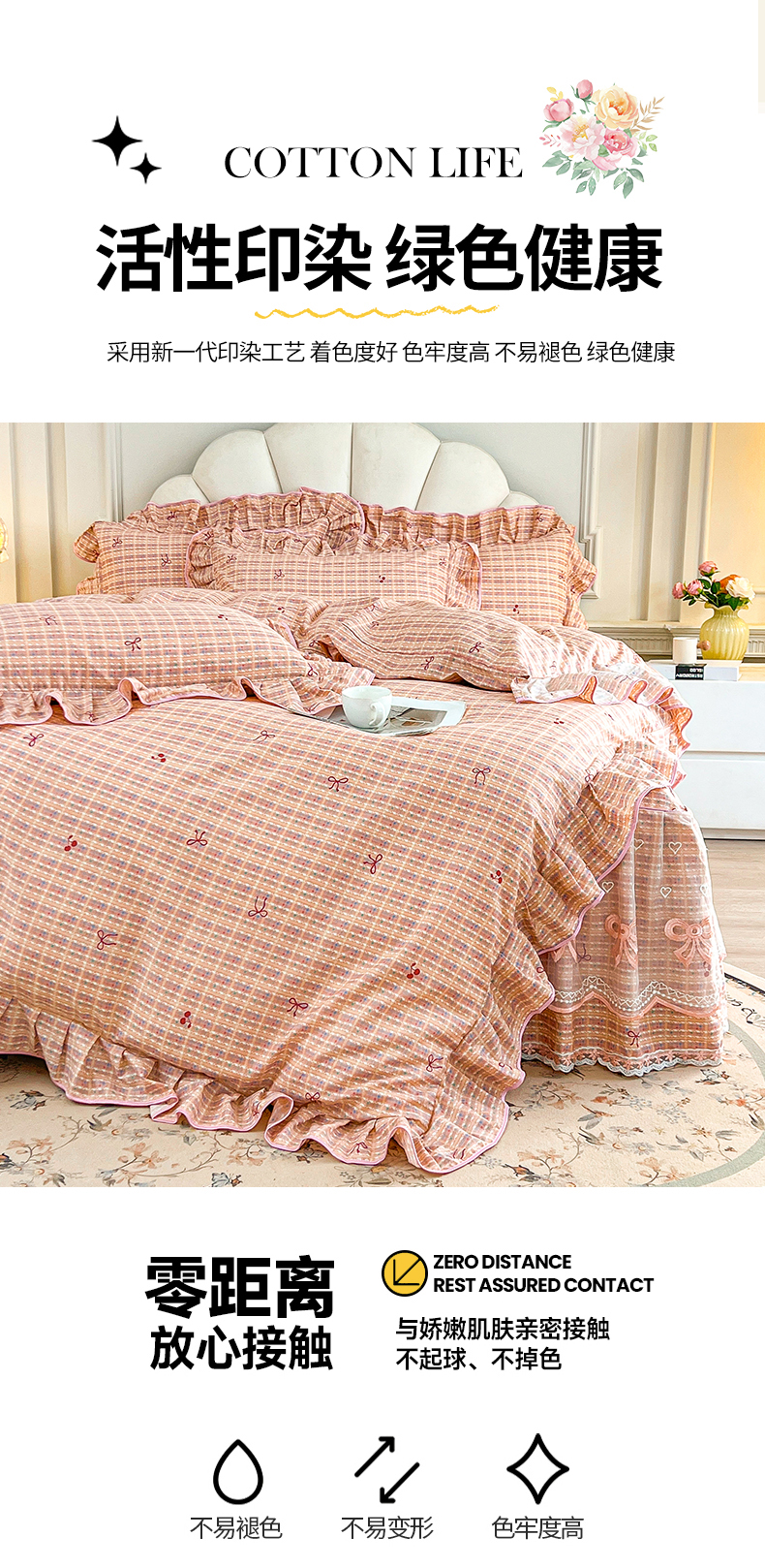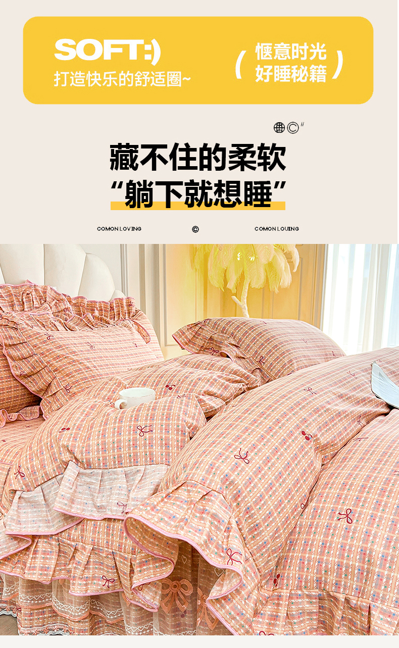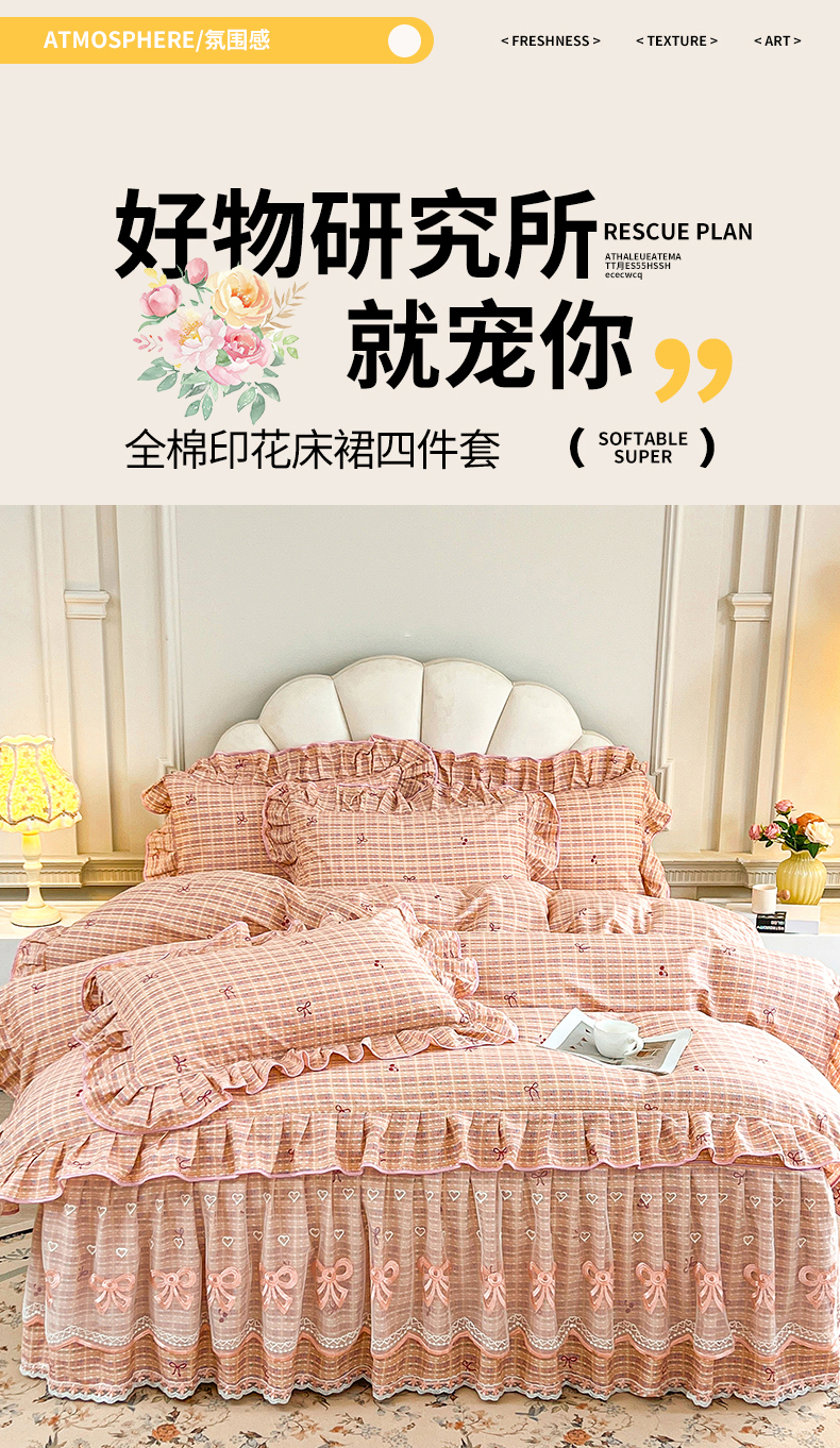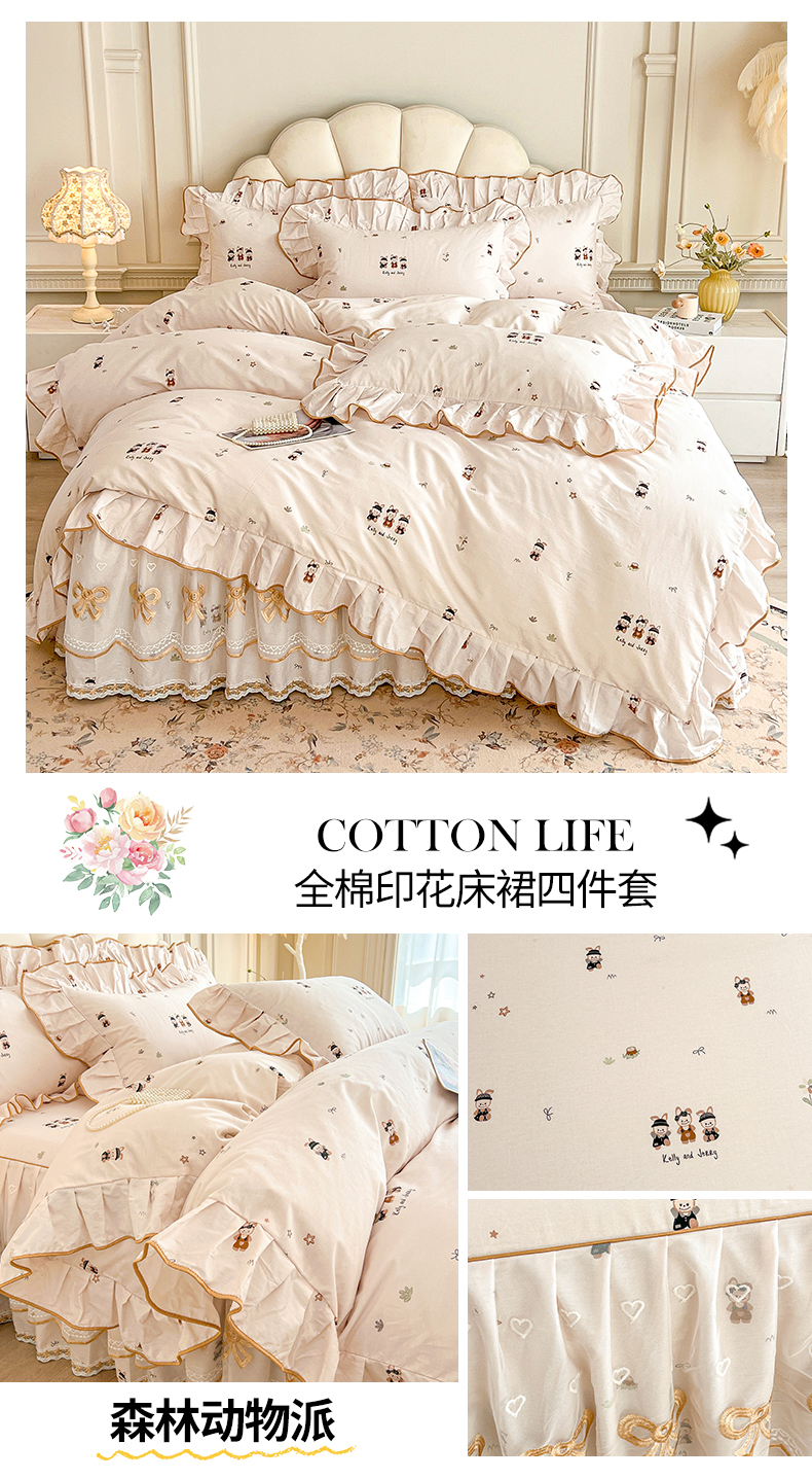 当前位置: 91家纺网 > 商品网购 > 床品套件 > 四件套 > 全棉普通四件套 > 宜凡家纺 2026新款全棉公主风单层床裙四件套② 樱桃蝴蝶结