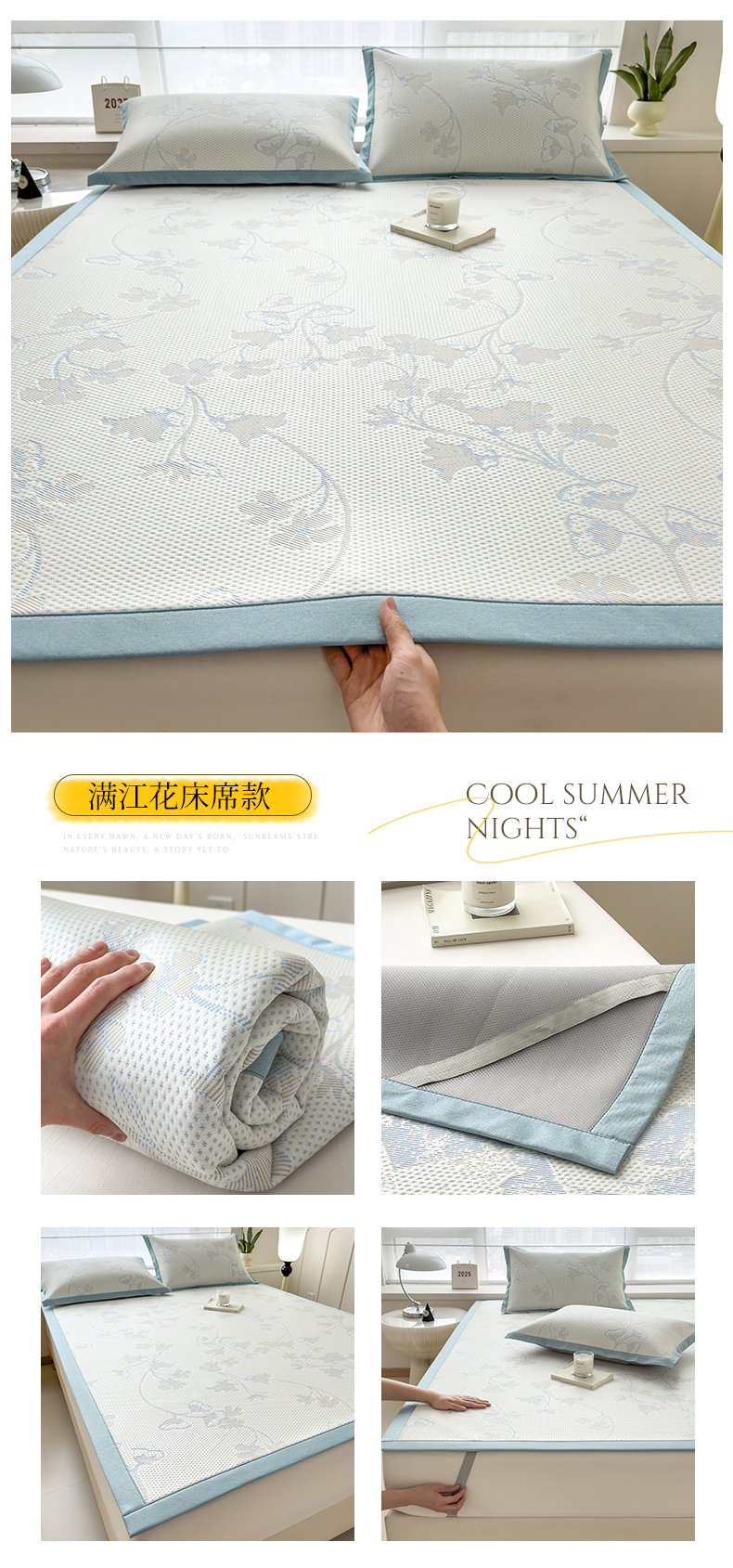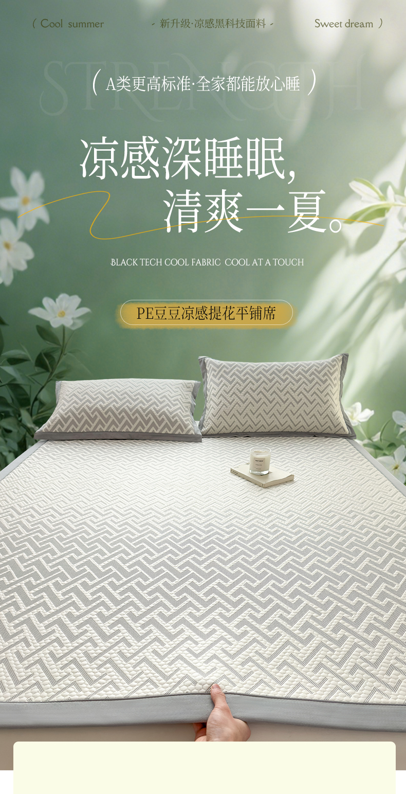 (总)倾慕家纺 2026新款PE50提花凉感冰丝凉席,花星点点粉,花星点点灰,花星点点绿,简蝶粉,简蝶蓝,叶繁粉,叶繁灰,叶繁蓝,叶繁绿,针叶粉,针叶蓝,针叶绿,组合