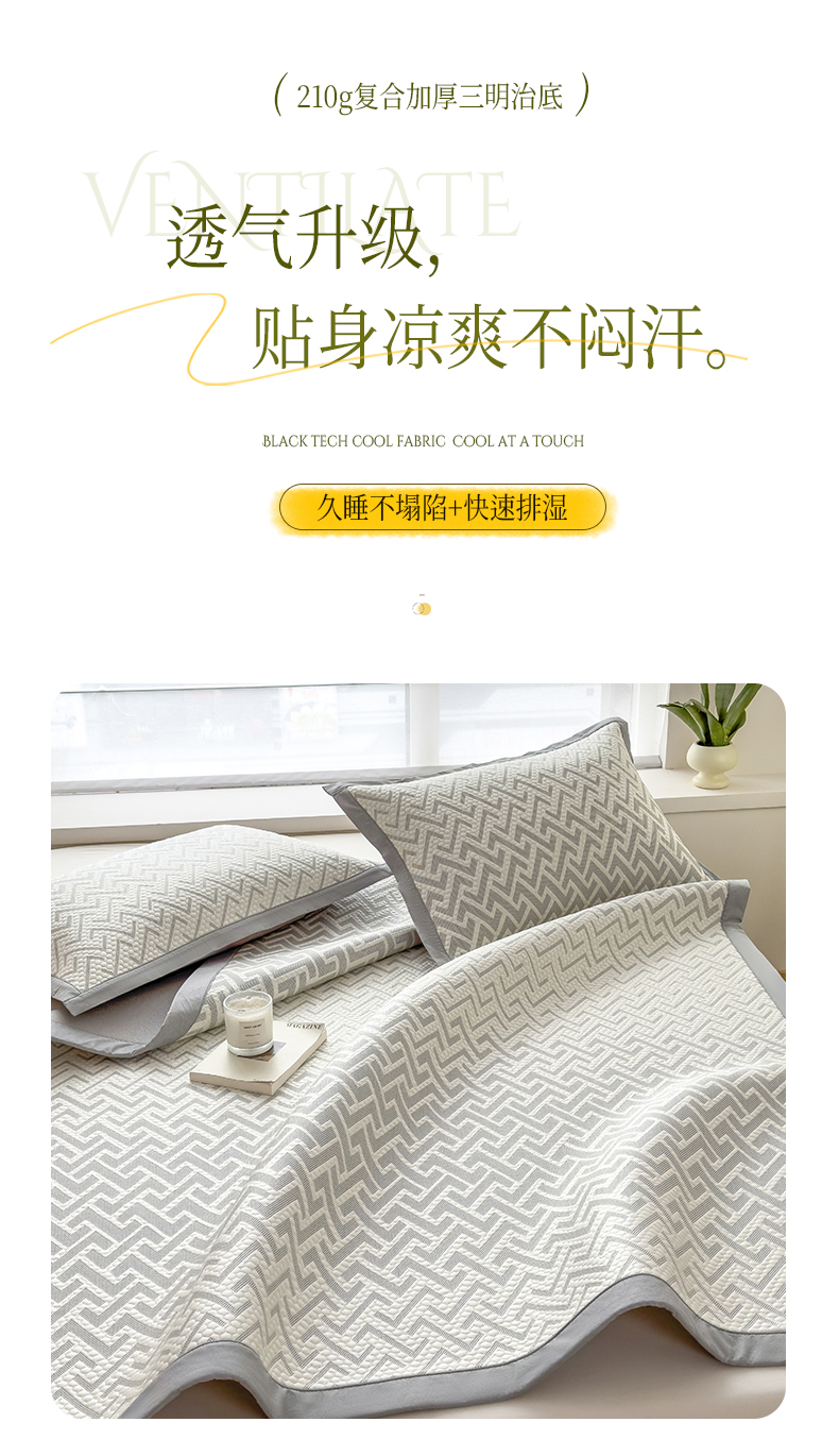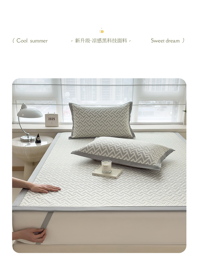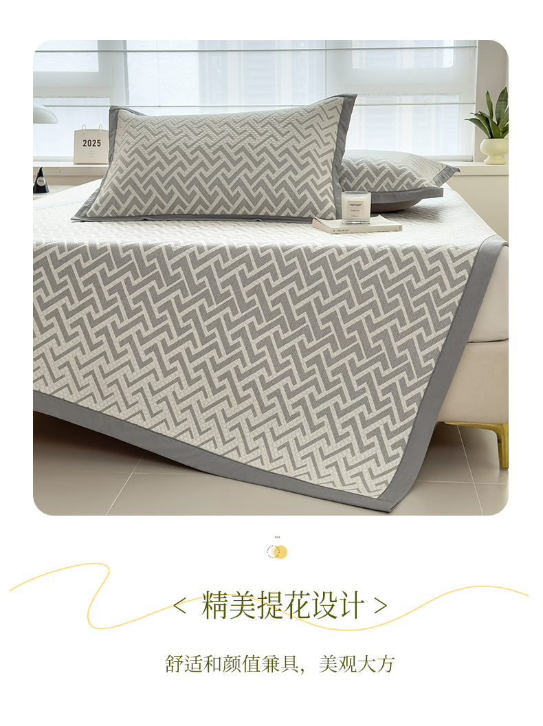 倾慕家纺 2026新款PE时尚风豆豆凉席花卉系列--床席款 迷宫灰床席款