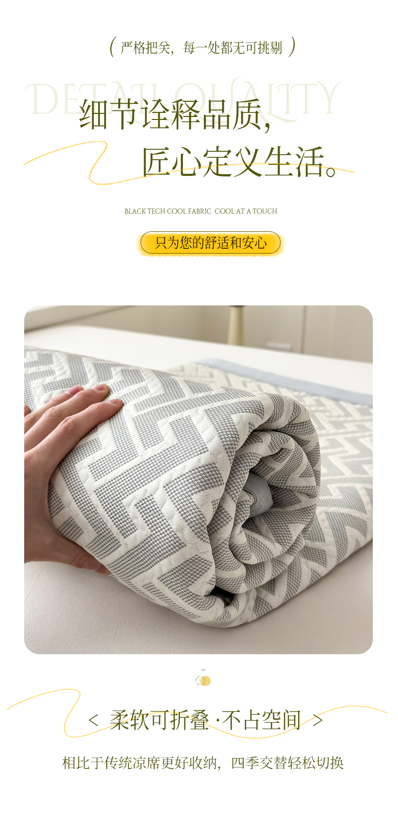 商品名称:倾慕家纺 2026新款PE时尚风豆豆凉席花卉系列--床席款 迷宫灰床席款