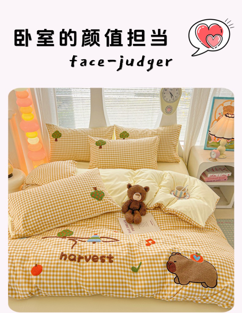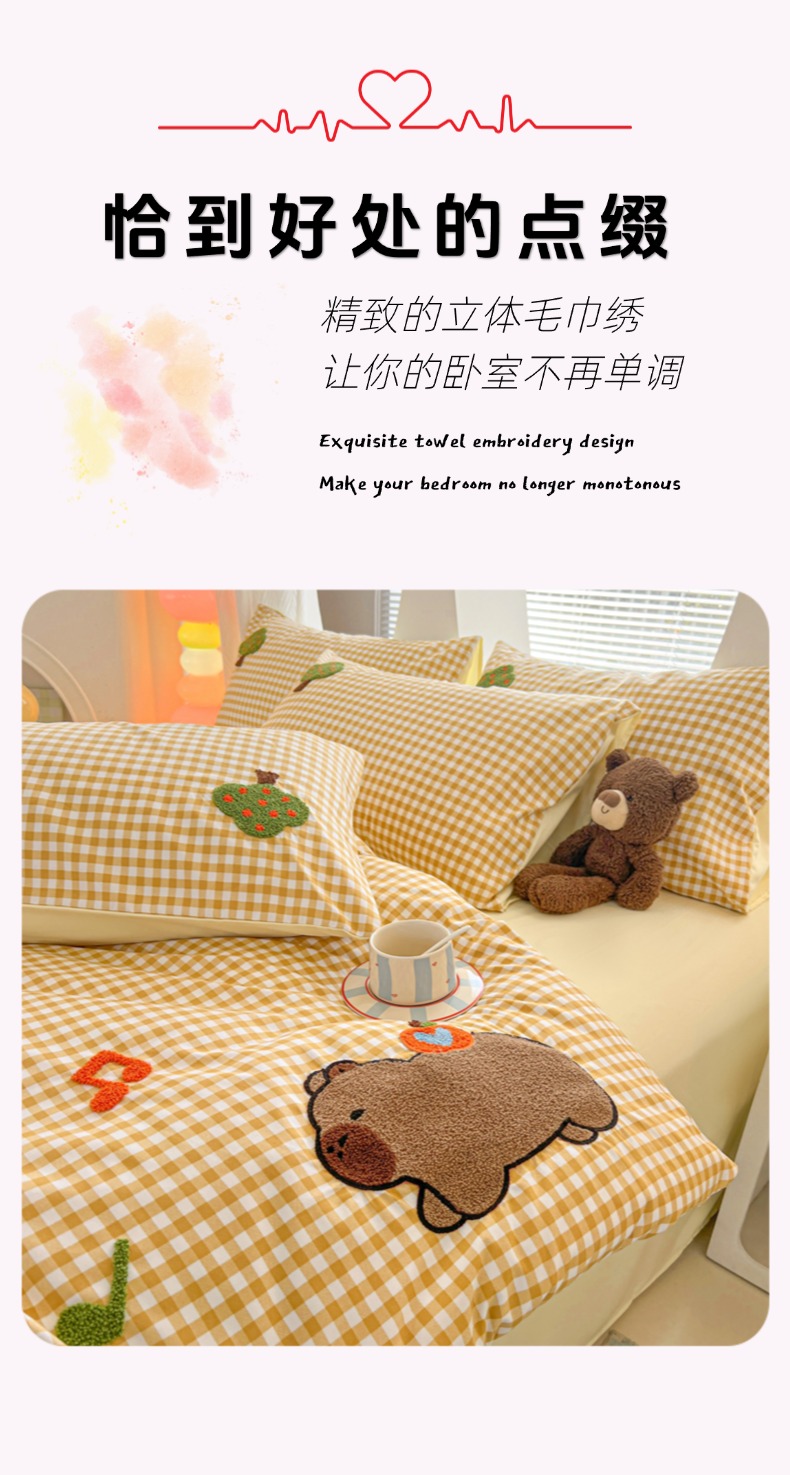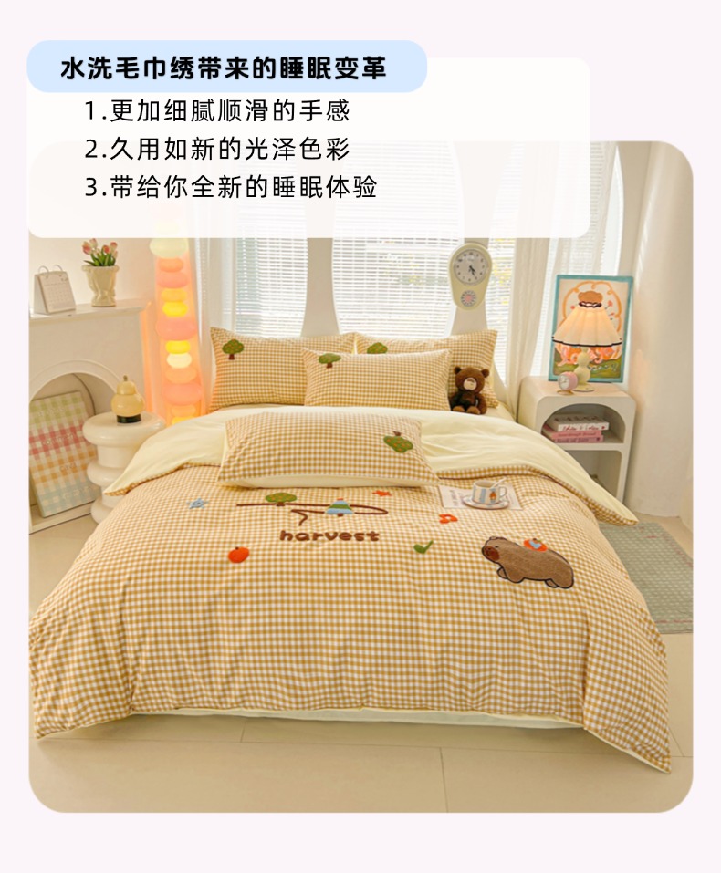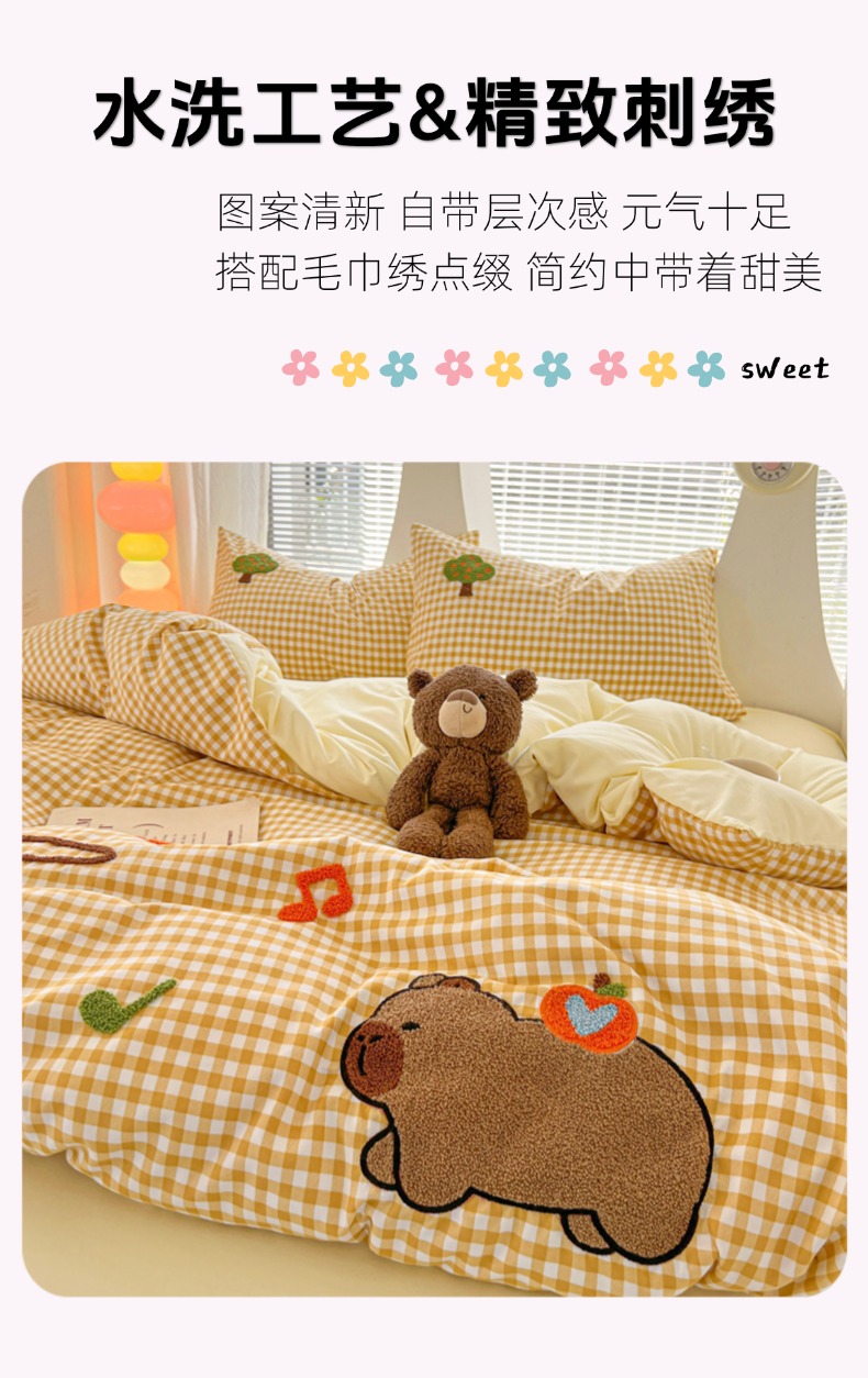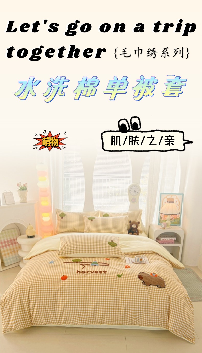 商品名称:欧妮家纺 2025新款水洗棉单被套柔软毛巾绣刺绣学生宿舍单件被罩卡通-拉拉旅行 拉拉旅行-黄色格