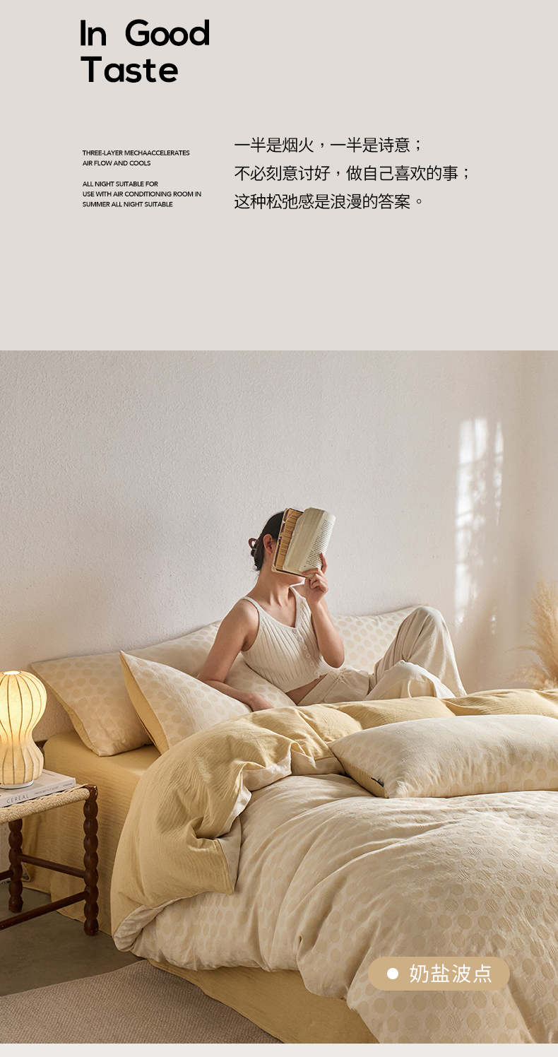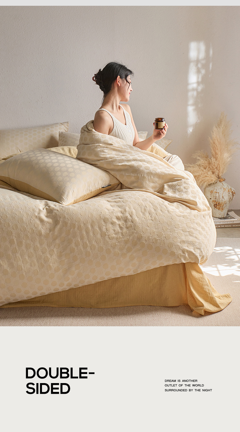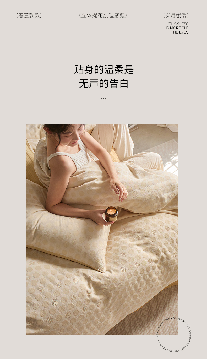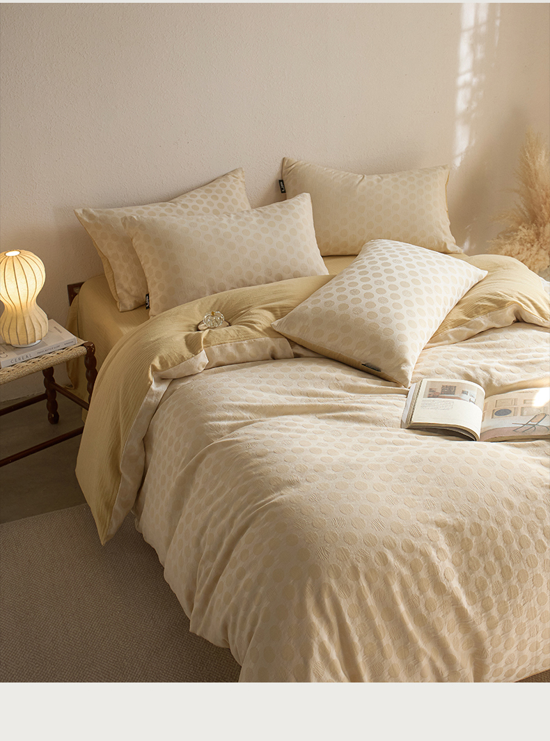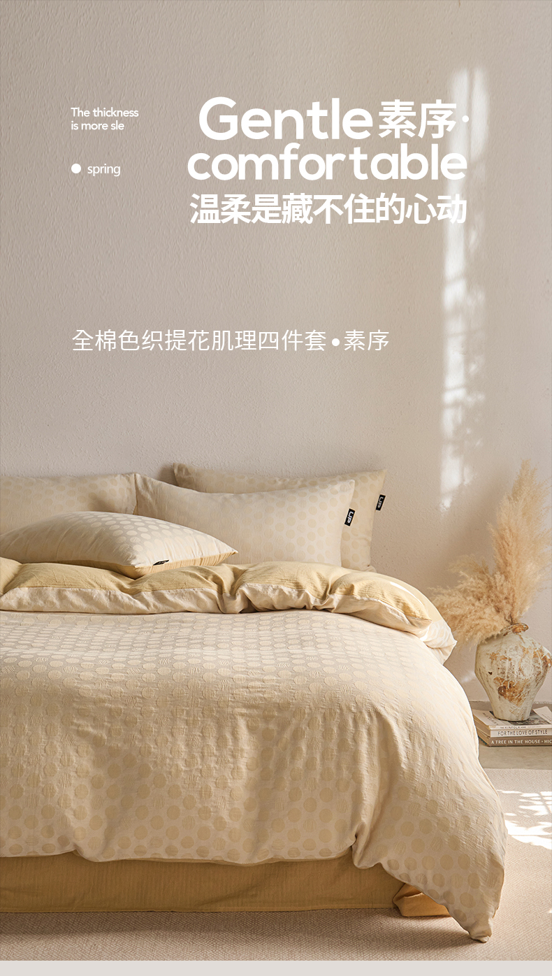 当前位置: 91家纺网 > 商品网购 > 床品套件 > 四件套 > 全棉活性四件套 > 千朵森 2026新款全棉纯棉色织提花肌理四件套-素序 素序-奶盐波点