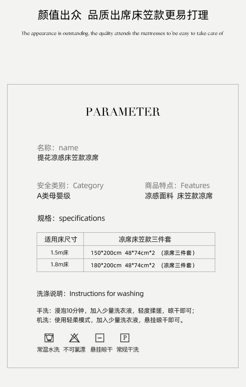 (总)千朵森 2026新款A类抗菌冰岛冰感丝床笠款凉席三件套 风格二,冰岛-暮夜蓝,冰岛-浅茶杏,冰岛-晴空蓝,冰岛-山茶灰,冰岛-山梗灰