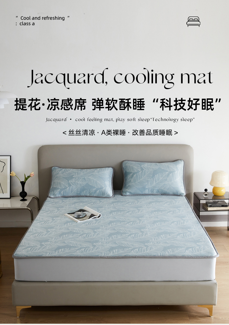 (总)千朵森 2026新款花卉系列冰感提花款凉席三件套,青萝屿,檀棕屿,雾蓝屿,组合