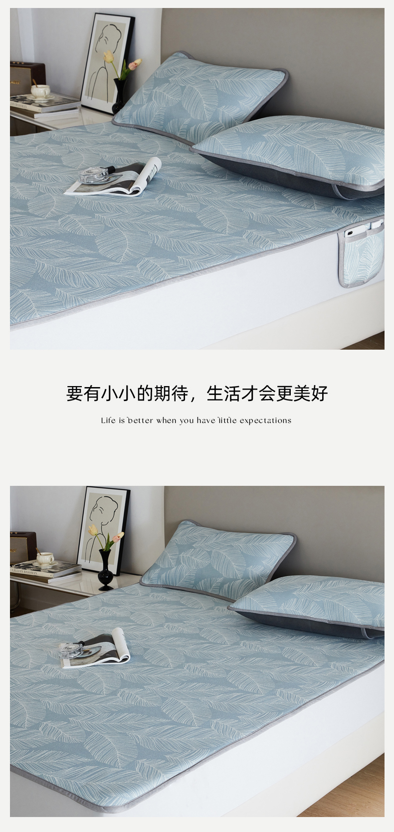 (总)千朵森 2026春夏新款冰感条纹凉席床笠款凉席席子三件套-素影,组合图仅供展示不可下单,素影灰,素影咖,素影蓝