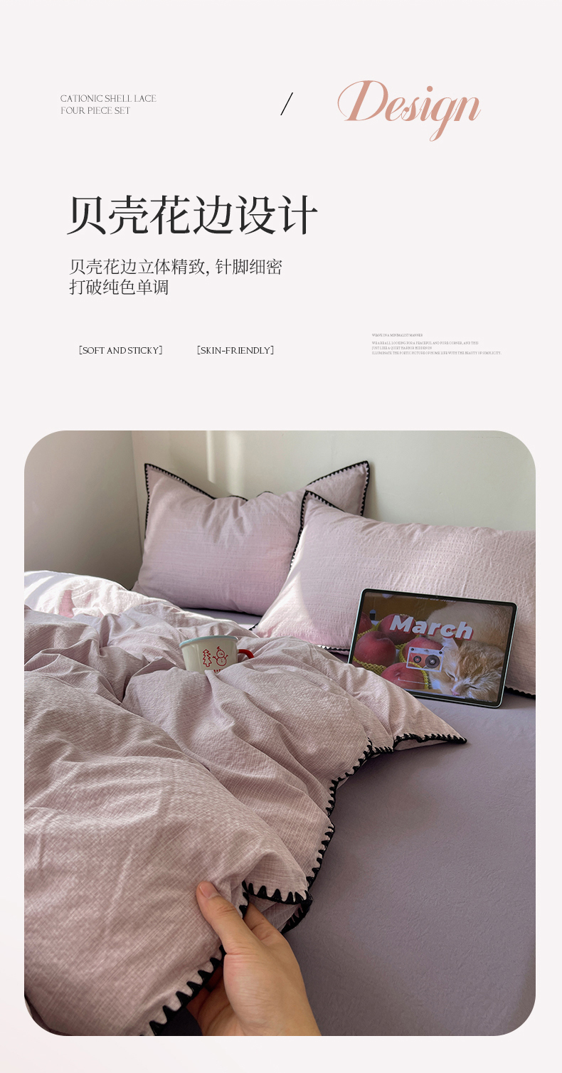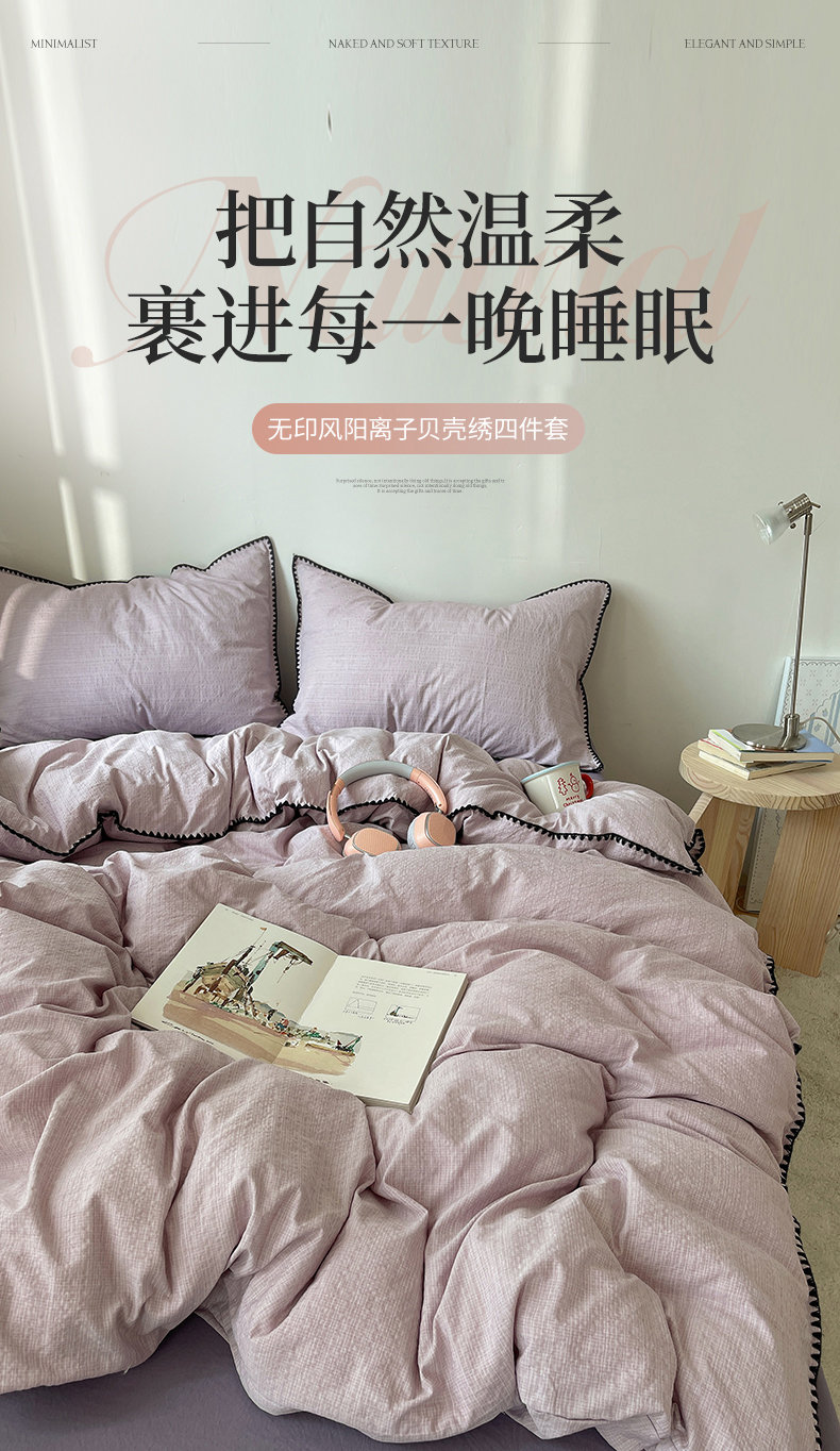 当前位置: 91家纺网 > 商品网购 > 床品套件 > 四件套 > 其它四件套 > 凯洛奇 2026新款色织阳离子贝壳边四件套 阳离子-烟紫