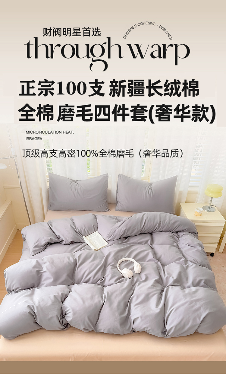 商品名称:(总)疆东2026高端轻奢100%新疆长绒棉纯色纯棉全棉磨毛四件套素色100支全棉纯棉磨毛四件套床单品件被罩