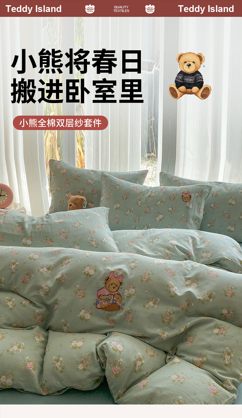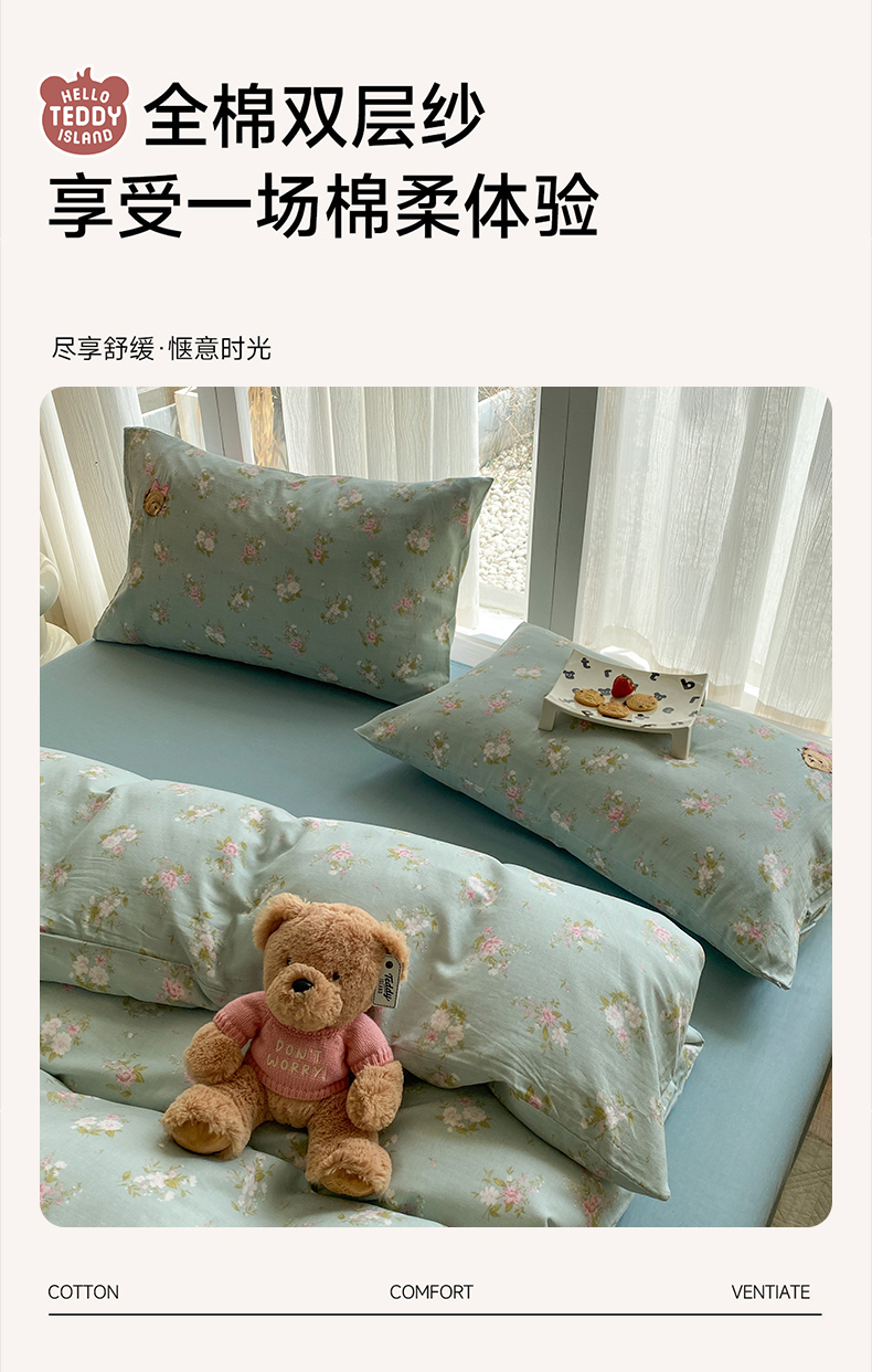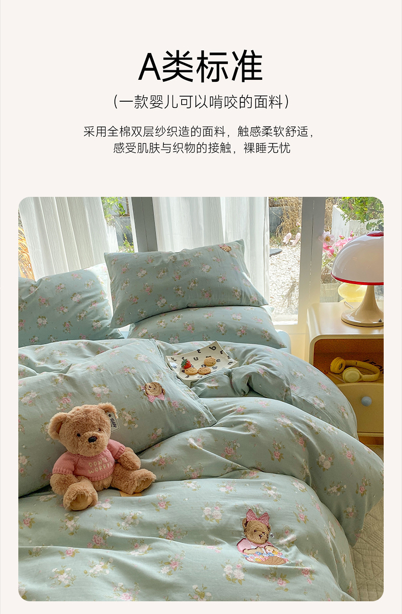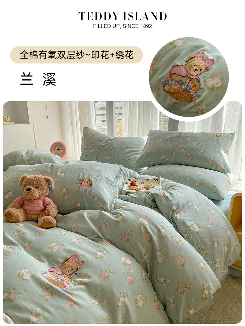 当前位置: 91家纺网 > 商品网购 > 床品套件 > 四件套 > 全棉普通四件套 > 尚品本色 2026新款全棉纯棉双层纱印花刺绣四件套 兰溪