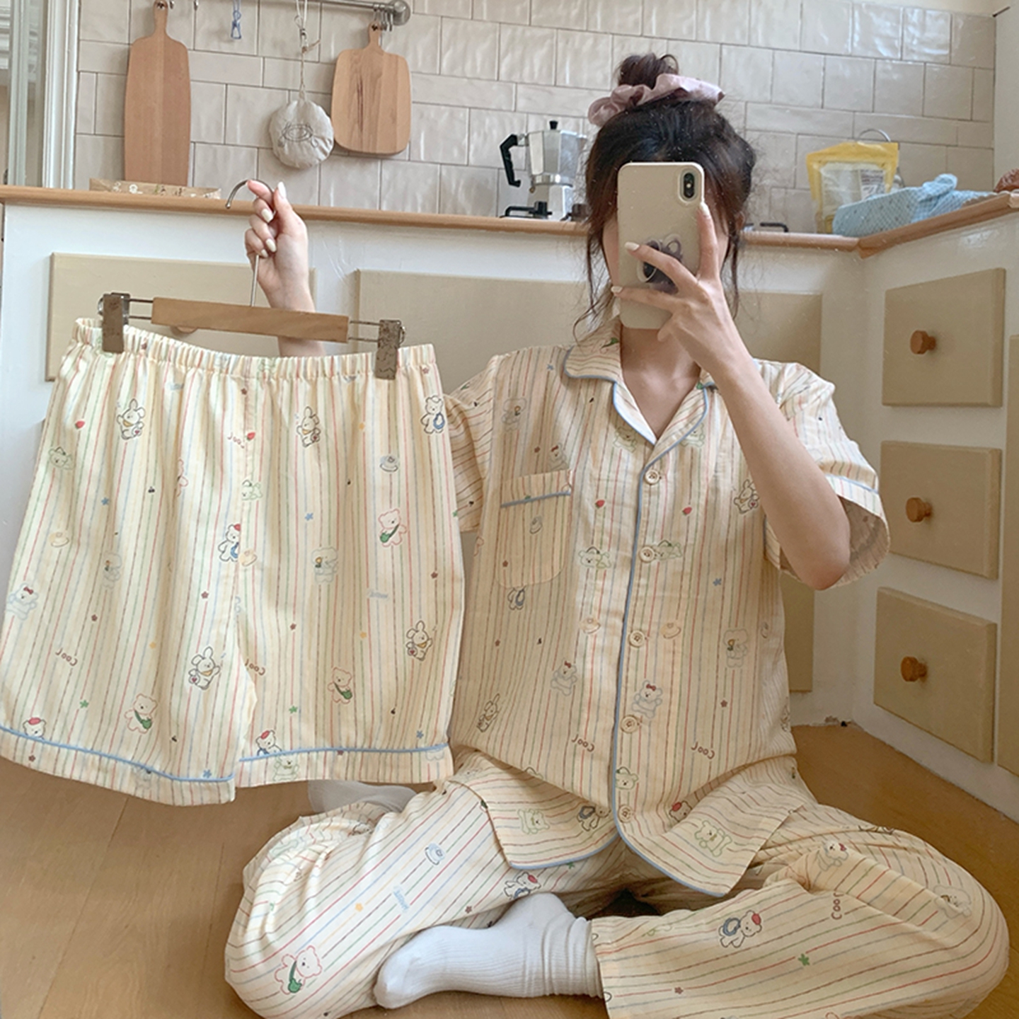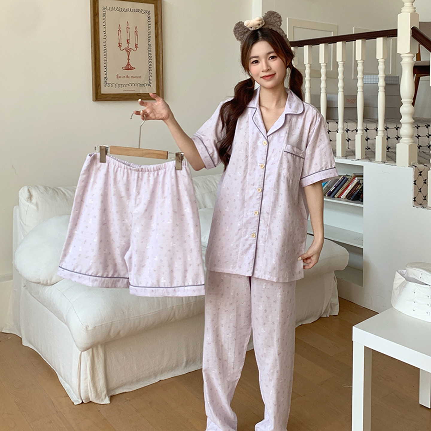 商品名称:爱思佳 2026新款全棉纯棉双层纱短袖睡衣系列 西高地