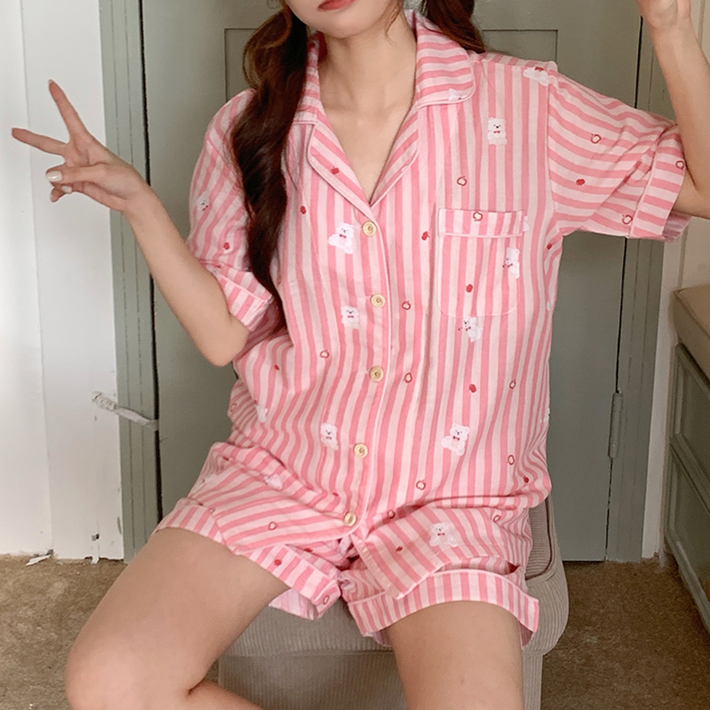 (总)爱思佳 2026新款全棉纯棉双层纱短袖睡衣系列,伴夏,草莓点点,嘟嘟熊,咖色小狗,蓝色大鹅,萌星,条纹蓝,西高地,消消乐,熊熊乐园,紫小兔