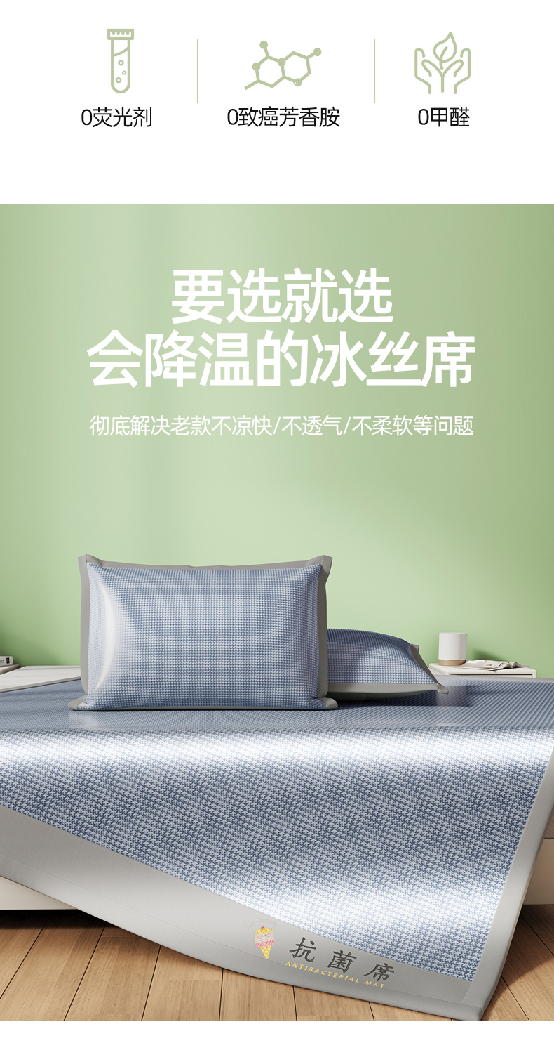 色鬼布艺高端家居主号 2026新款抗菌冰激凌色织提花床单款床席冰丝席席子凉席 冰淇淋-浅蓝