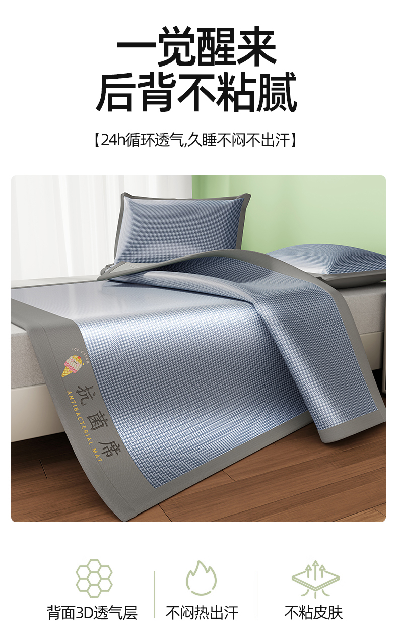 商品名称:色鬼布艺高端家居主号 2026新款抗菌冰激凌色织提花床单款床席冰丝席席子凉席 冰淇淋-浅蓝