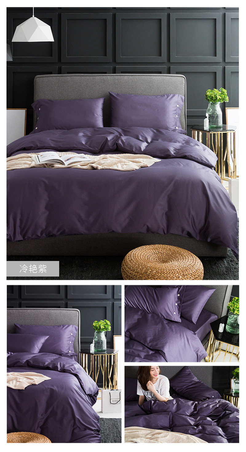 涞澳家纺 长绒棉素色四件套 冷艳紫