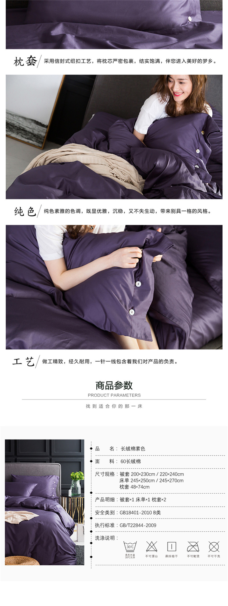 商品名称:涞澳家纺 长绒棉素色四件套 冷艳紫