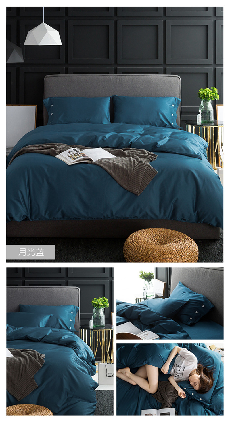 涞澳家纺 长绒棉素色四件套 月光蓝