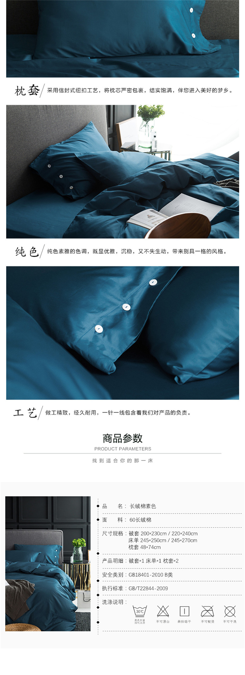 商品名称:涞澳家纺 长绒棉素色四件套 月光蓝