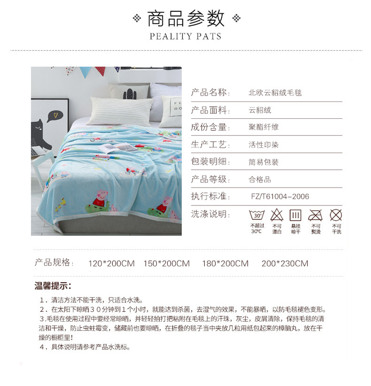 商品名称:羋多家纺 云貂绒毛毯童毯盖毯 小猪佩奇