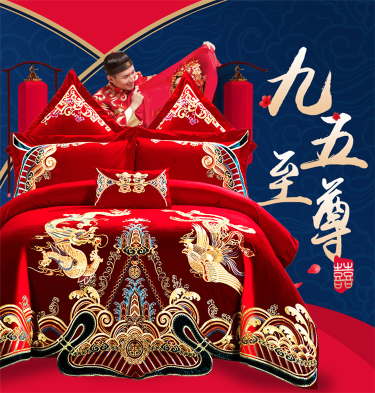 (总)千禧家纺 2025新款加厚高克重全消光牛奶绒刺绣婚庆四件套,百年好合(绒),龙凤喜事(绒),早生贵子(绒),缔结良缘,福禧生财,龙凤赐福,龙吟凤舞,喜嫁龙凤,喜临门