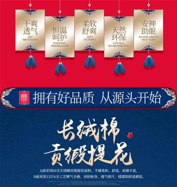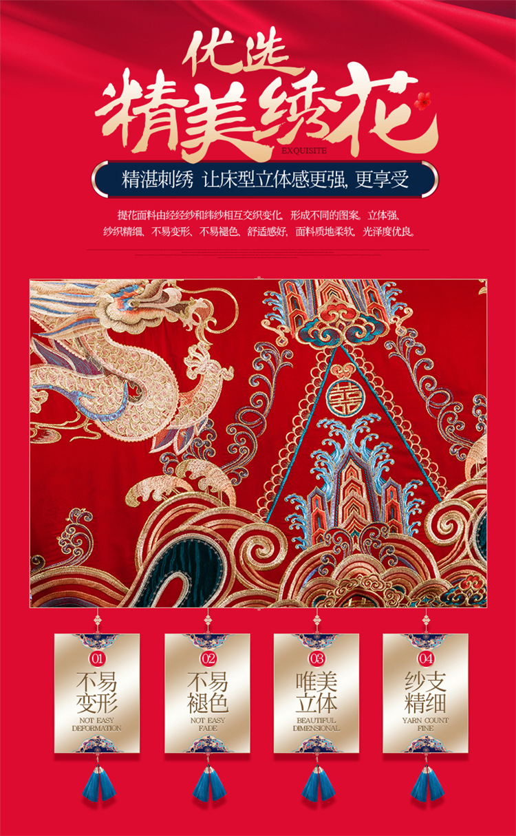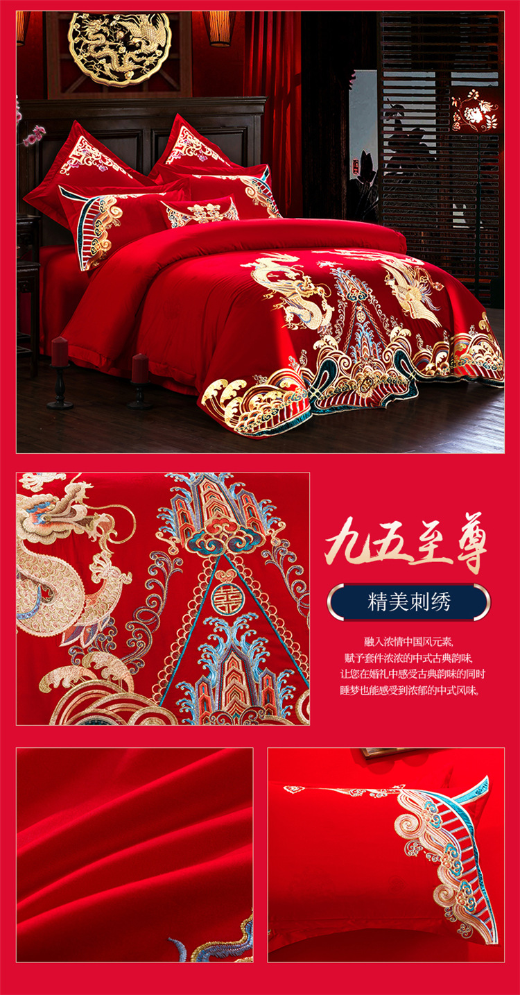 商品名称:千禧婚庆专供 长绒棉贡缎提花绣花婚庆套件 九五至尊